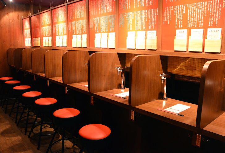 ▼一蘭拉麵的特色就是座位隔間,讓客人有專屬空間好好享用拉麵,單身者也毫不突兀,在小小的空間有著大大的滿足感。