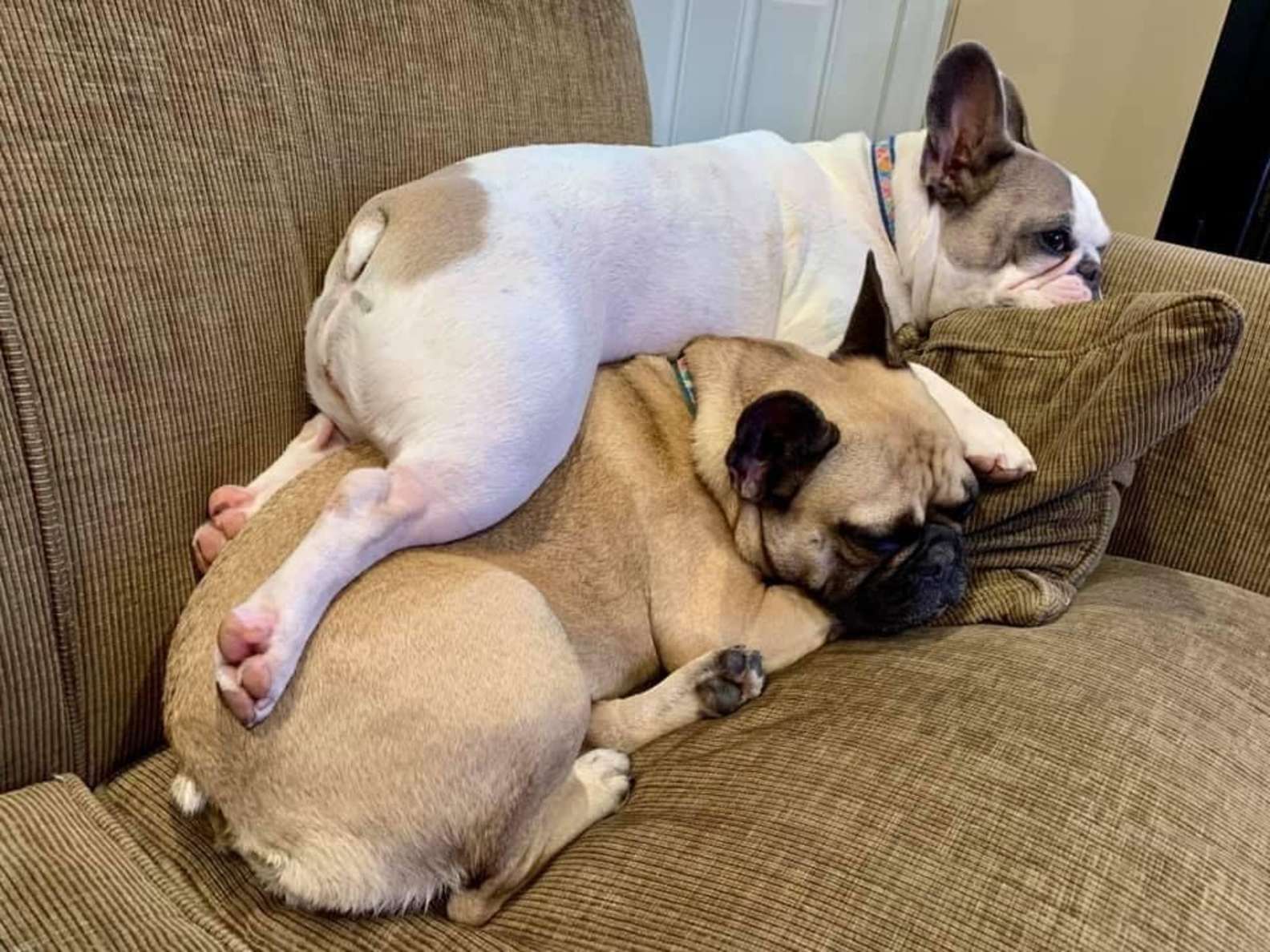 2020年11月13日很多飼主擔心家中的毛孩孤單,會再領養一隻毛孩給牠作伴。國外網友Jennifer Lewis養了2隻法鬥,分別是姐姐Frannie和妹妹Trixie。這兩隻狗狗感情很好,就連睡覺的時候都窩在一起,看起來超可愛~