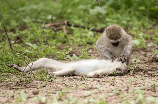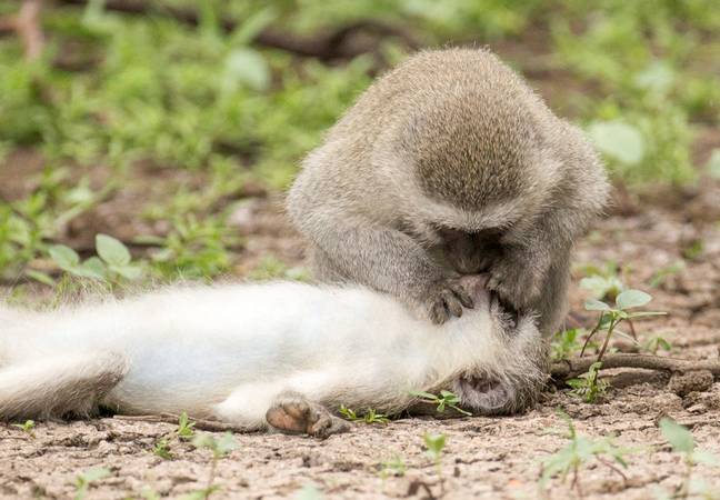 猴子是一種非常聰明的動物,經常會做出一些人性化的動作。日前野生動物攝影師William Steel在波札那嘉柏隆里(Gaborone)野生動物保護區拍攝了一組有趣的照片,照片的主角是兩隻猴子,其中一隻竟然在給另一隻做「人工呼吸」~