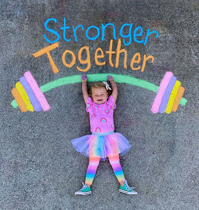 ▼Abbey想出這樣的攝影創作,最初是從孩子們身上獲得的靈感。那天她看到大女兒在地上畫了一些氣球,就替女兒跟她畫的氣球拍了一張合照。她後來意識到這個點子很有創意,這才開始創作粉筆畫。