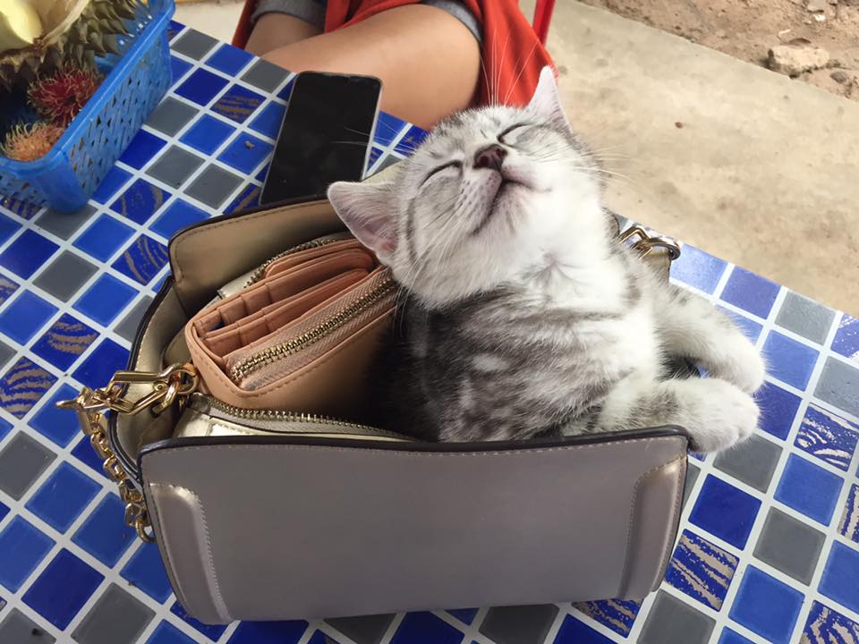 有些貓咪是不會隨便接近陌生人的,當其他人靠近牠們時就會迅速逃跑,對環境非常防備。可是也有會主動接近陌生人的貓咪,就像這名泰國女網友在水果店遇到的小貓,竟然主動跑到她的包包裡睡覺,超萌的模樣讓網友都快融化了。