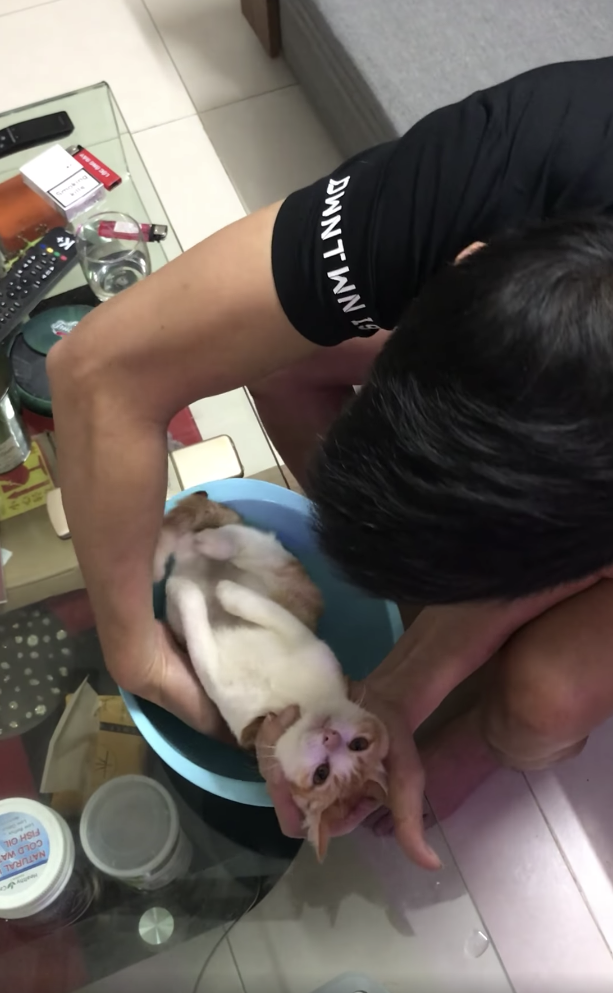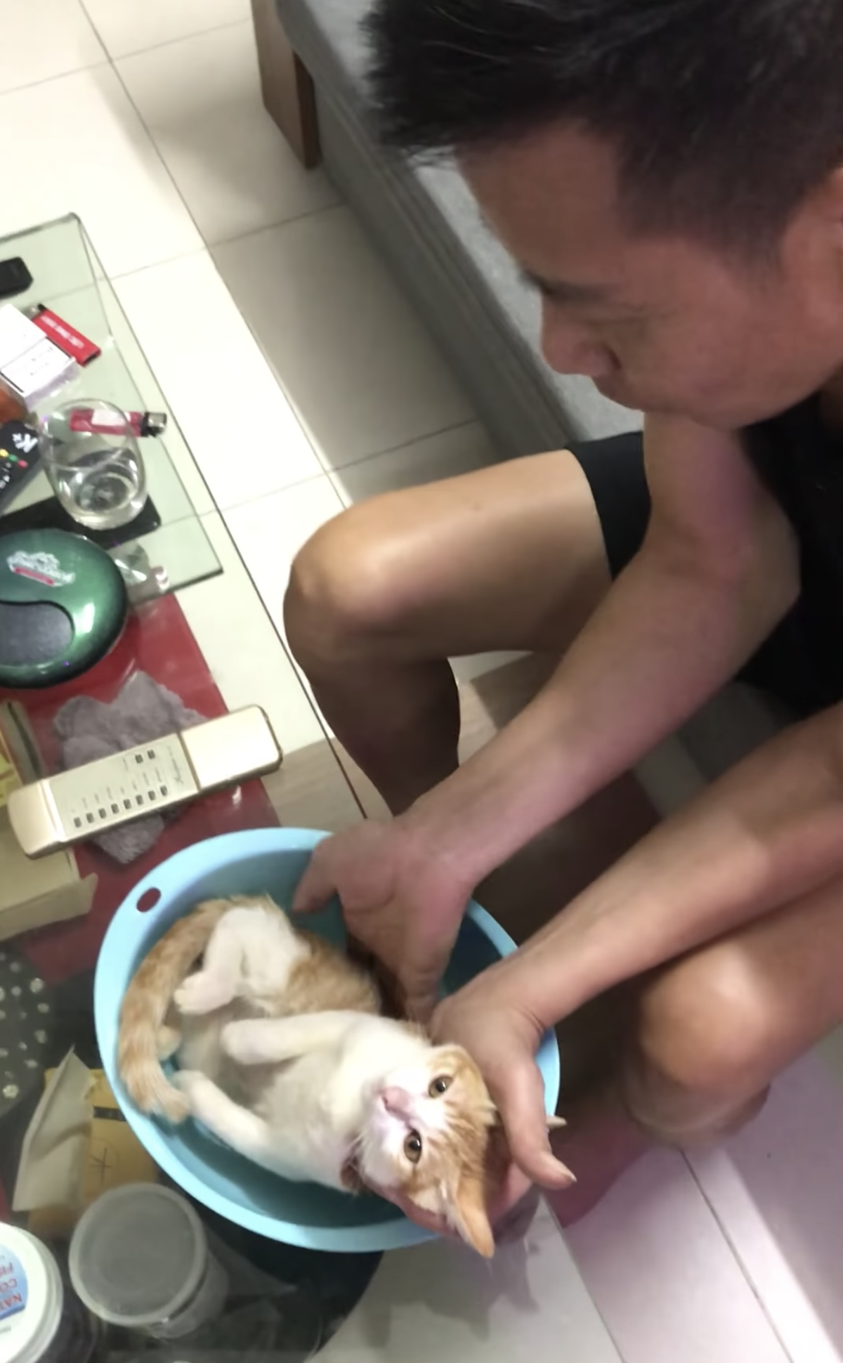 爸請出貓貓示範「幫嬰兒洗澡」 小橘全程躺平「任揉搓」網羨:怎那麼配合~
