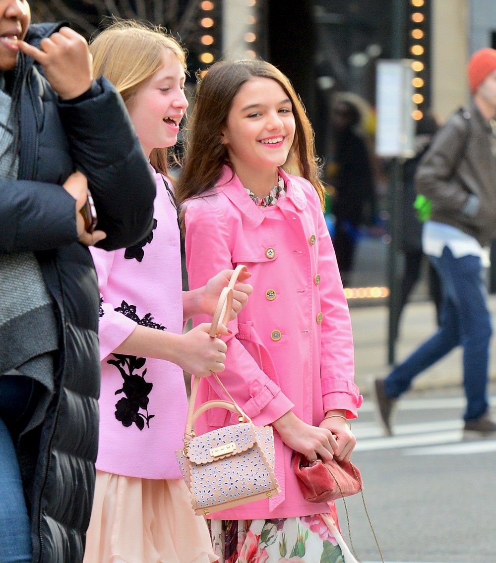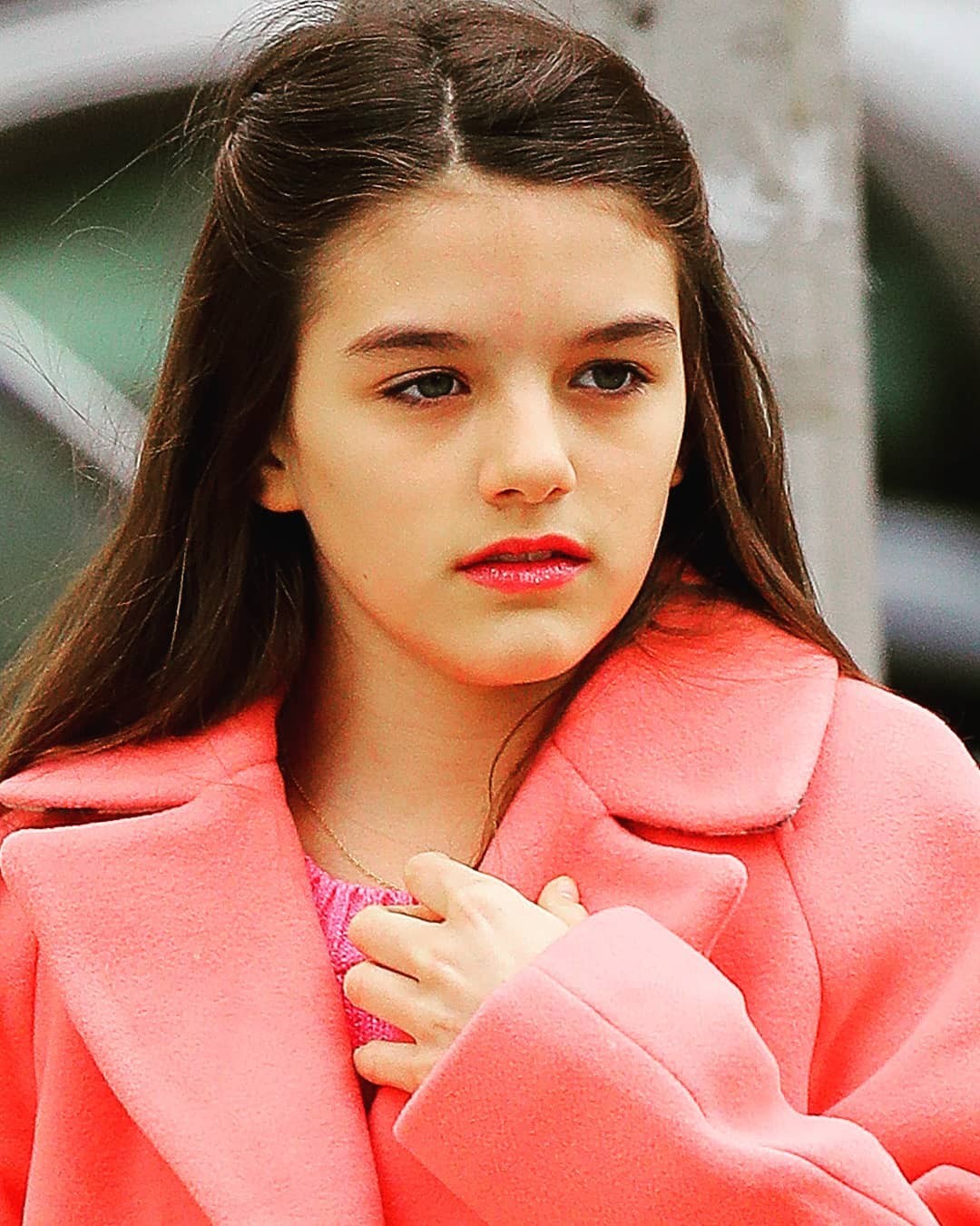 ▼最近蘇莉再一次登上版面,這次她出現在公眾面前,已經是一位14歲的少女了。媒體拍到她和朋友在紐約街頭奔跑的畫面,只見蘇莉五官依舊精緻,只是褪去嬰兒肥,看起來成熟很多。她穿著粉色的上衣、印花裙子,一頭飄逸的長髮非常美,看起來很有明星的架式。
