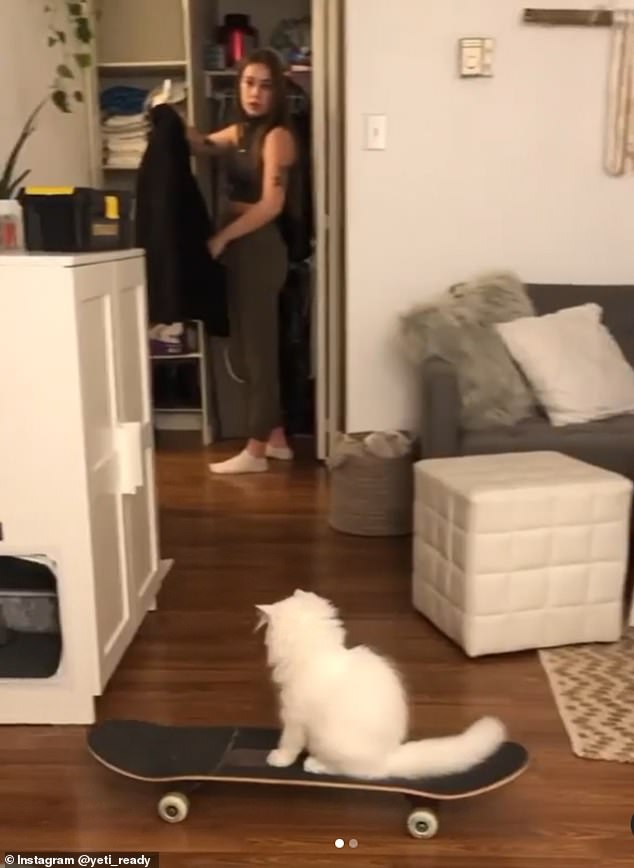 ▼從那之後Kylee和Randy經常看到貓咪在家中玩滑板,牠已經非常熟練,完全掌握滑板的技巧和精髓了。