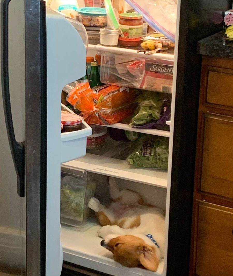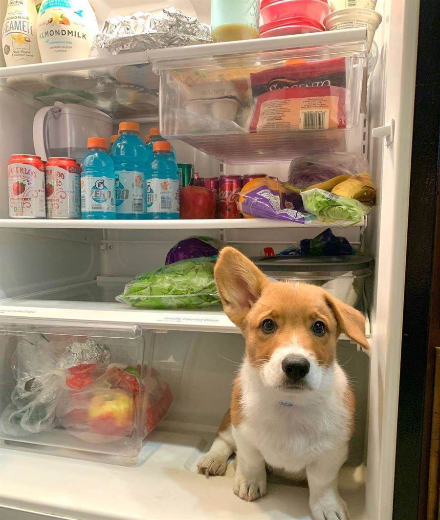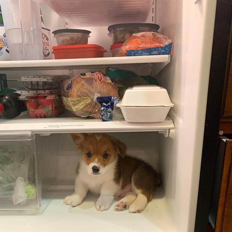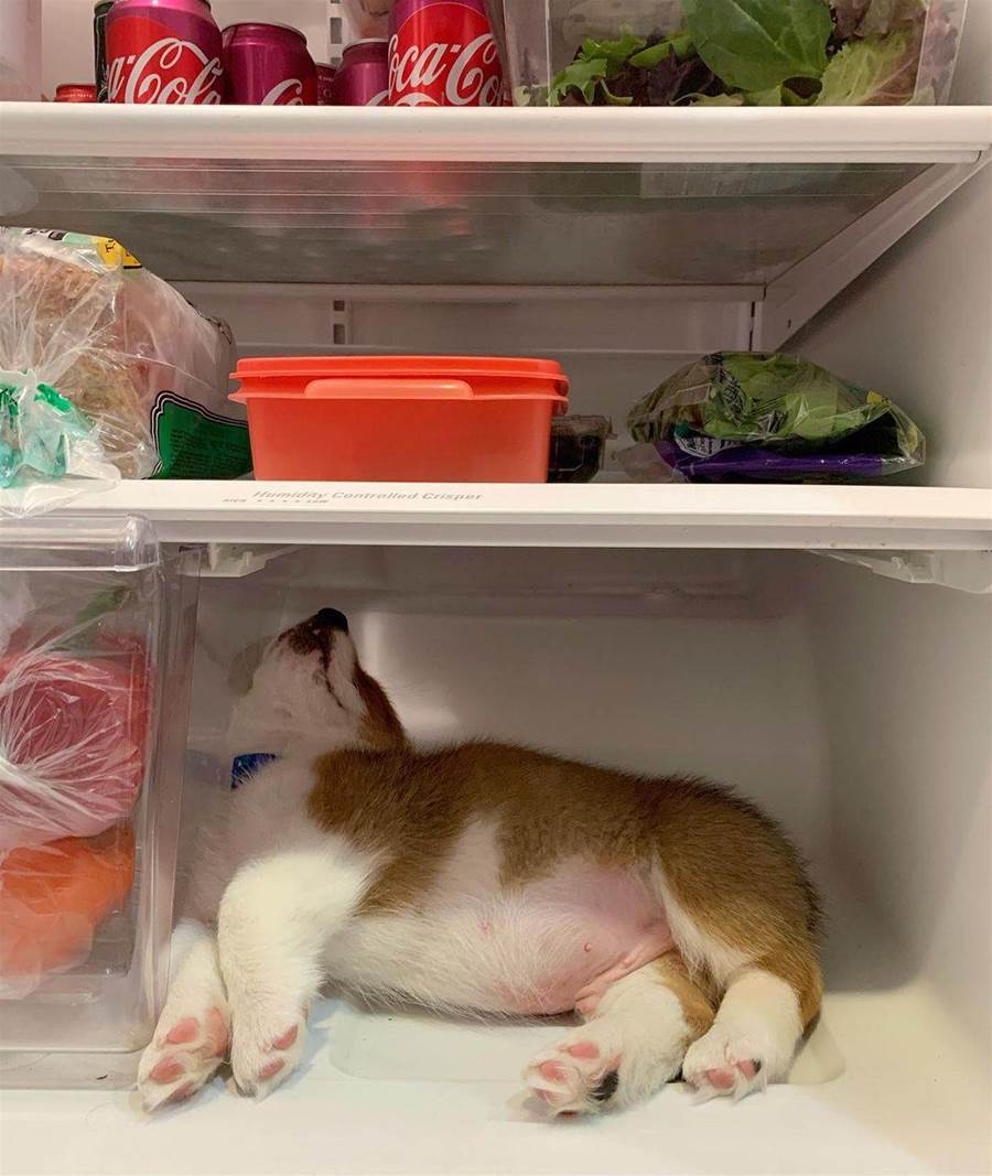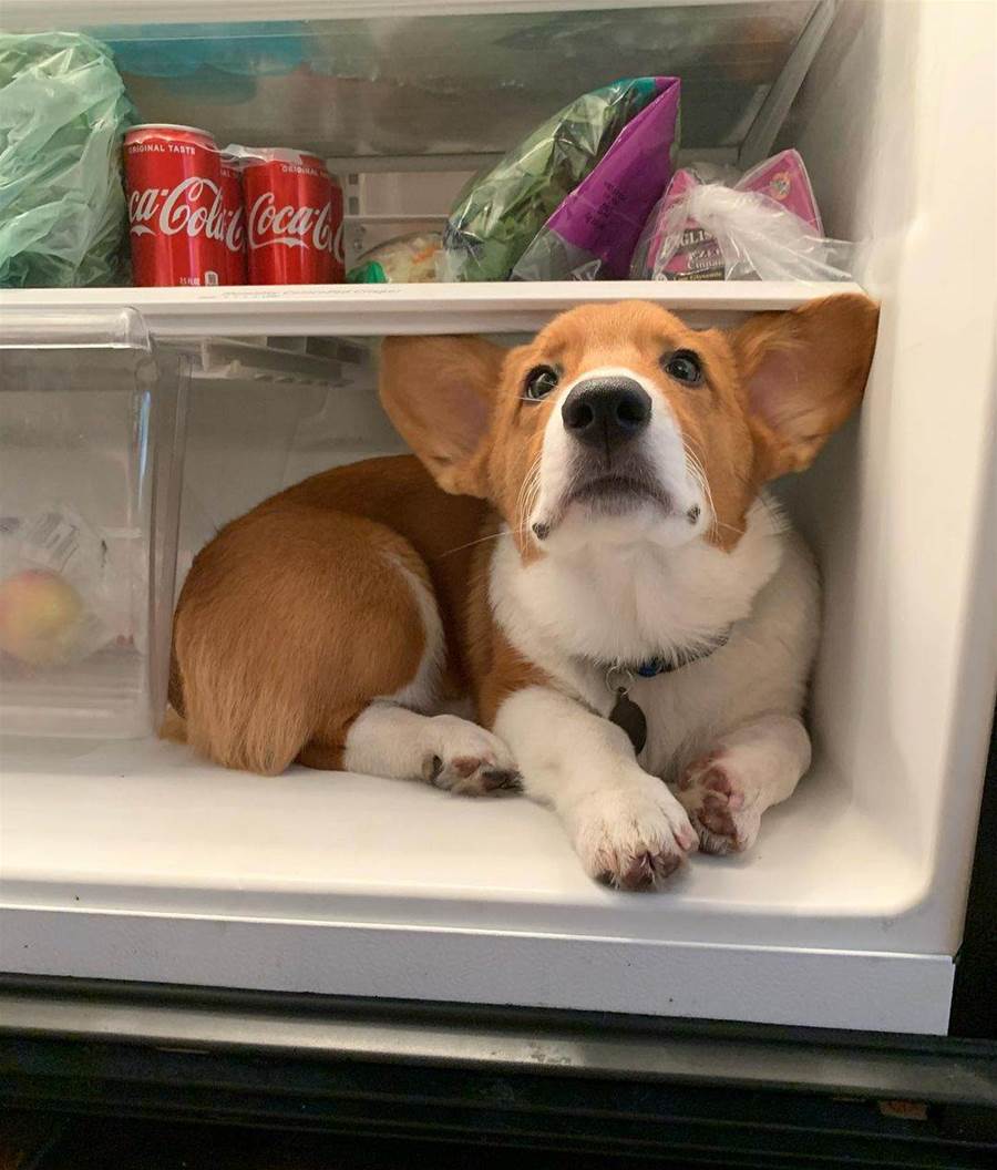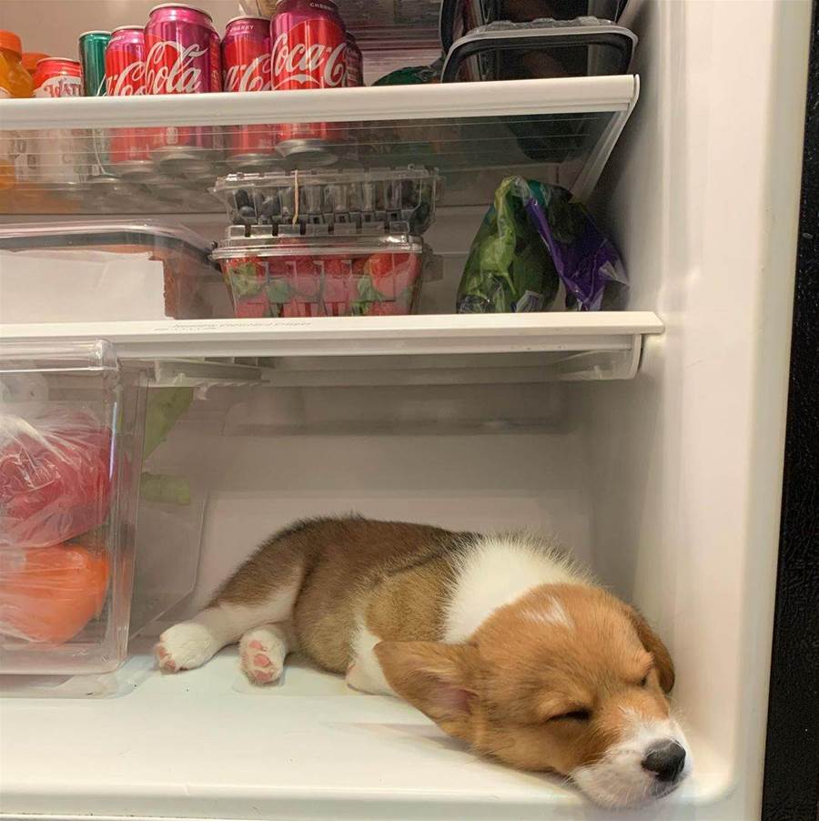 開冰箱驚見一坨「冰基淩」! 萌柯基從小「最愛睡冰箱」主人無奈:喬一個空位給你睡