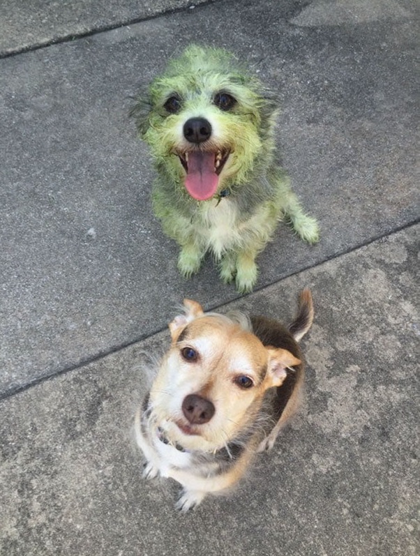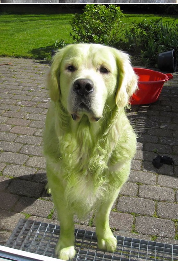 ▼牠去剛剛修剪過的草坪裡翻了一圈,結果變成了綠巨人。
