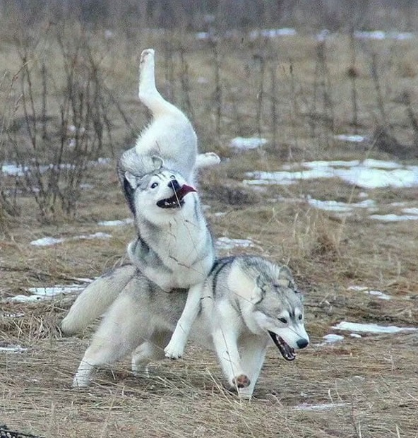 ▼鄰居家新養了一隻狗,牠超喜歡我家狗的。