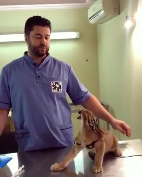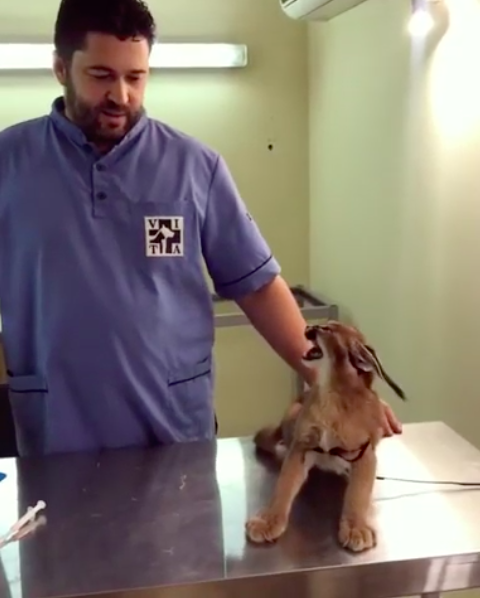 ▼影片中的這隻小獰貓戴著胸背帶,應該是跟人生活在一起的寵物。但獸醫摸牠的時候,牠卻表現得兇巴巴,還轉身揮爪子。