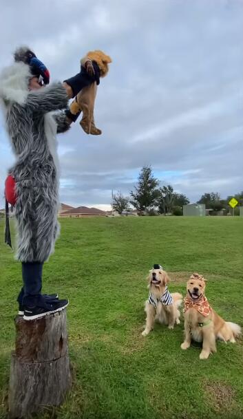 2020年11月22日兩隻可愛的黃金獵犬 Kenai、Kono和爸爸Jeremy媽媽Mandi一起住在美國佛羅里達州,最近他們又迎來了一個新的家庭成員,小主人Malia。為了慶祝小寶寶的降生, Kenai 和Kono幫助爸爸媽媽一起還原了電影《獅子王》中剛出生的小獅子辛巴接受動物們朝拜的經典場景,超療癒的畫面把網友萌翻了。