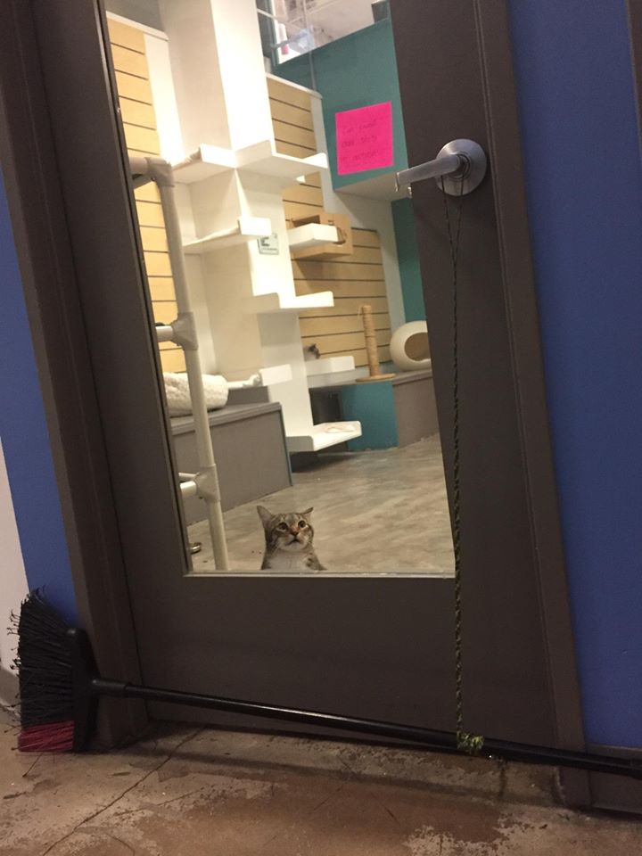 ▼這隻貓咪叫做 Quilty,因為做了一些不好的事,讓牠落得被「單獨禁閉」的下場。