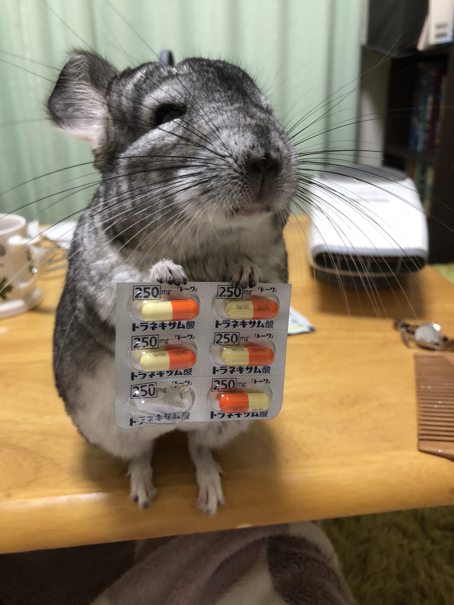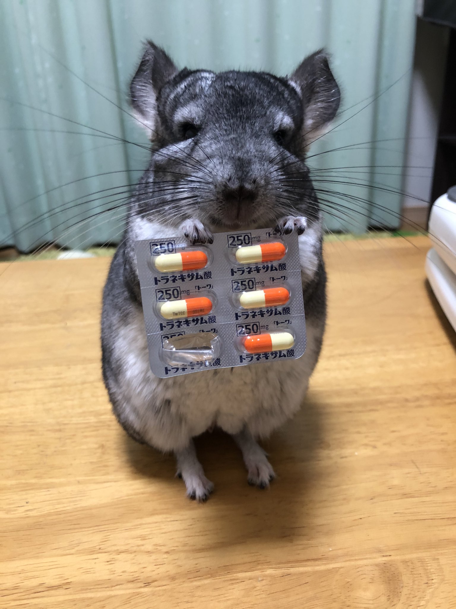 2020年11月22日可愛龍貓來給主人送藥啦!日本推主@salutenchant養了一隻名叫「開心果」(ピスタチオ)的可愛龍貓,並經常在推特上分享開心果的萌照。最近主人po出一組「開心果勸吃藥」的照片。只見胖乎乎的龍貓用小巧的手手抓著一排膠囊,一臉誠懇地看著主人,好像在說:「要乖乖吃藥才能恢復健康呀。」