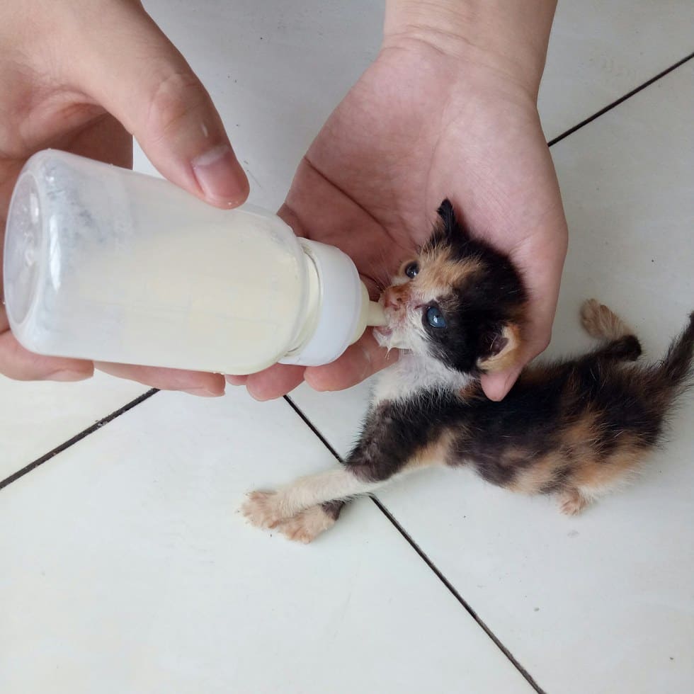 ▼由於珊莎還小必須獲得一百分的照顧,因此亞倫經常會帶著牠給獸醫檢查,也為牠準備了奶瓶餵奶,扮演起貓媽媽的角色。