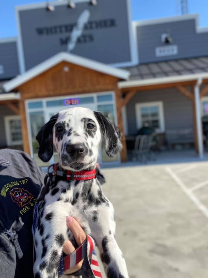 2020年11月23日這隻狗狗小小年紀就很有消防汪的架勢了~美國俄亥俄州賽維亞消防隊(Seville-Guilford Fire Department)最近迎來了一位新成員,那就是一隻叫Marshall的大麥町犬寶寶。Marshall未來會成為服務犬,主要負責推廣火警預防。現在牠的主要任務則是擔任消防員們的「體能教練」,督促大家積極健身鍛鍊。