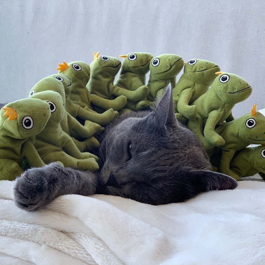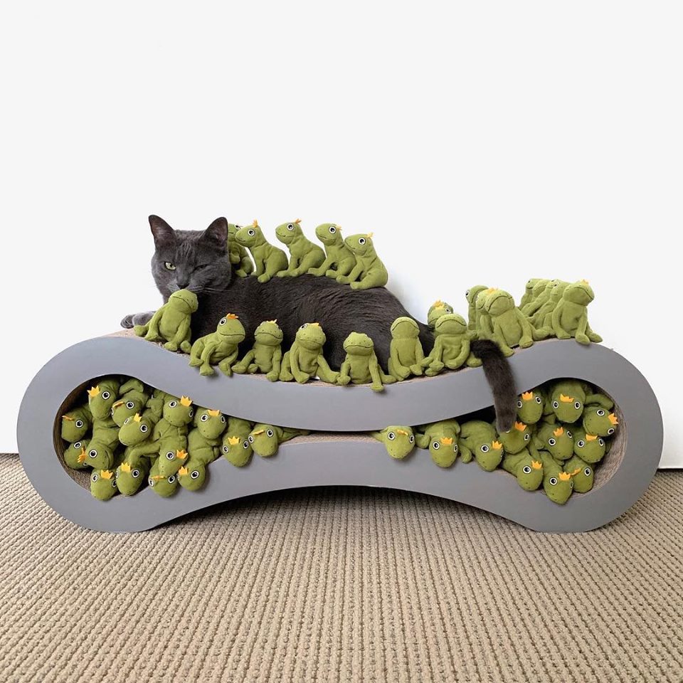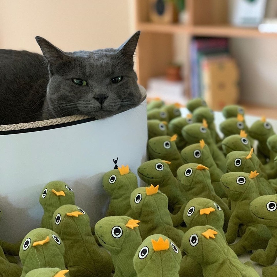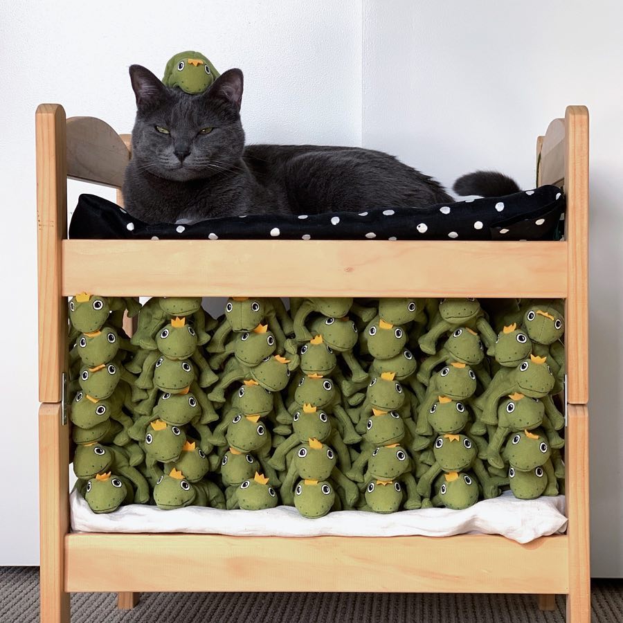 喵皇登基啦~主人進貢上百「IKEA青蛙奴僕」 牠一臉驕傲:都是朕的天下