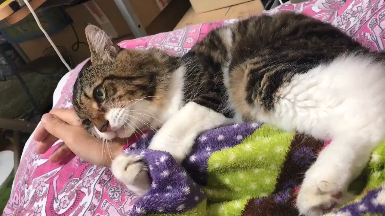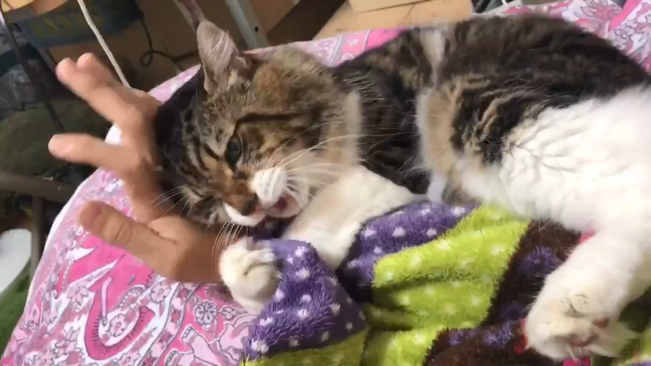 ▼主人每次搖晃手臂,貓咪都會發出婉轉的叫聲,就像在唱歌一樣。
