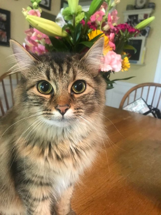 ▼鮮花很美麗,但不及貓咪萬分之一。