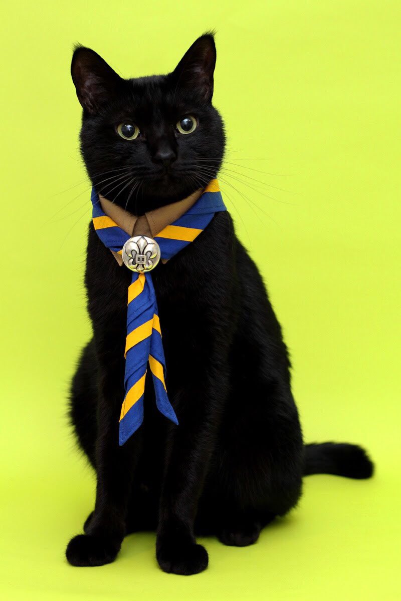 ▼貓咪「ジュウハン」擁有純黑色的華麗皮毛,再加上黃色的眼睛,本來就很帥氣。牠戴上襯衫項圈,秒變嚴肅的上班族。