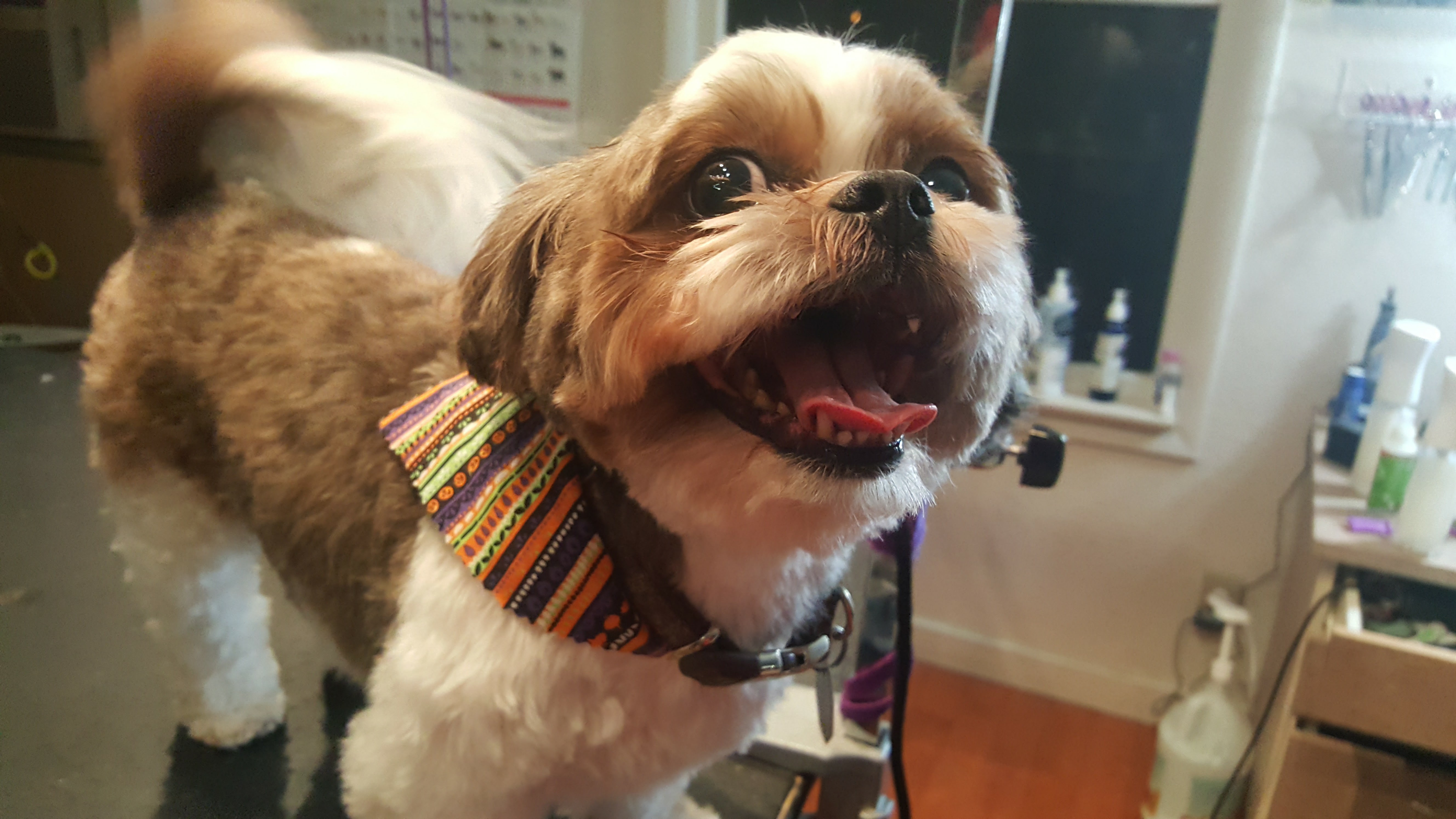 2020年11月24日在最快樂的時候遇到最不想見的人!最近國外一名美容師分享了一張有趣的照片,那是一隻可愛的西施犬。只見狗狗瞪著大眼睛、一臉驚嚇,好像看到了什麼可怕的東西。原來這隻狗狗是店裡的常客,經常來洗澡,牠外出散步時巧遇美容師,那表情超真實。