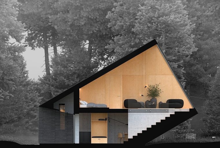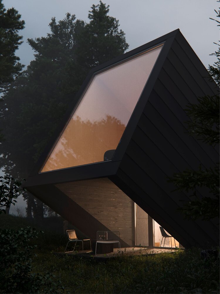 森林裡的幾何別墅!簡約黑房屋「故意蓋很歪」 走進才懂「與自然融為一體」的美好