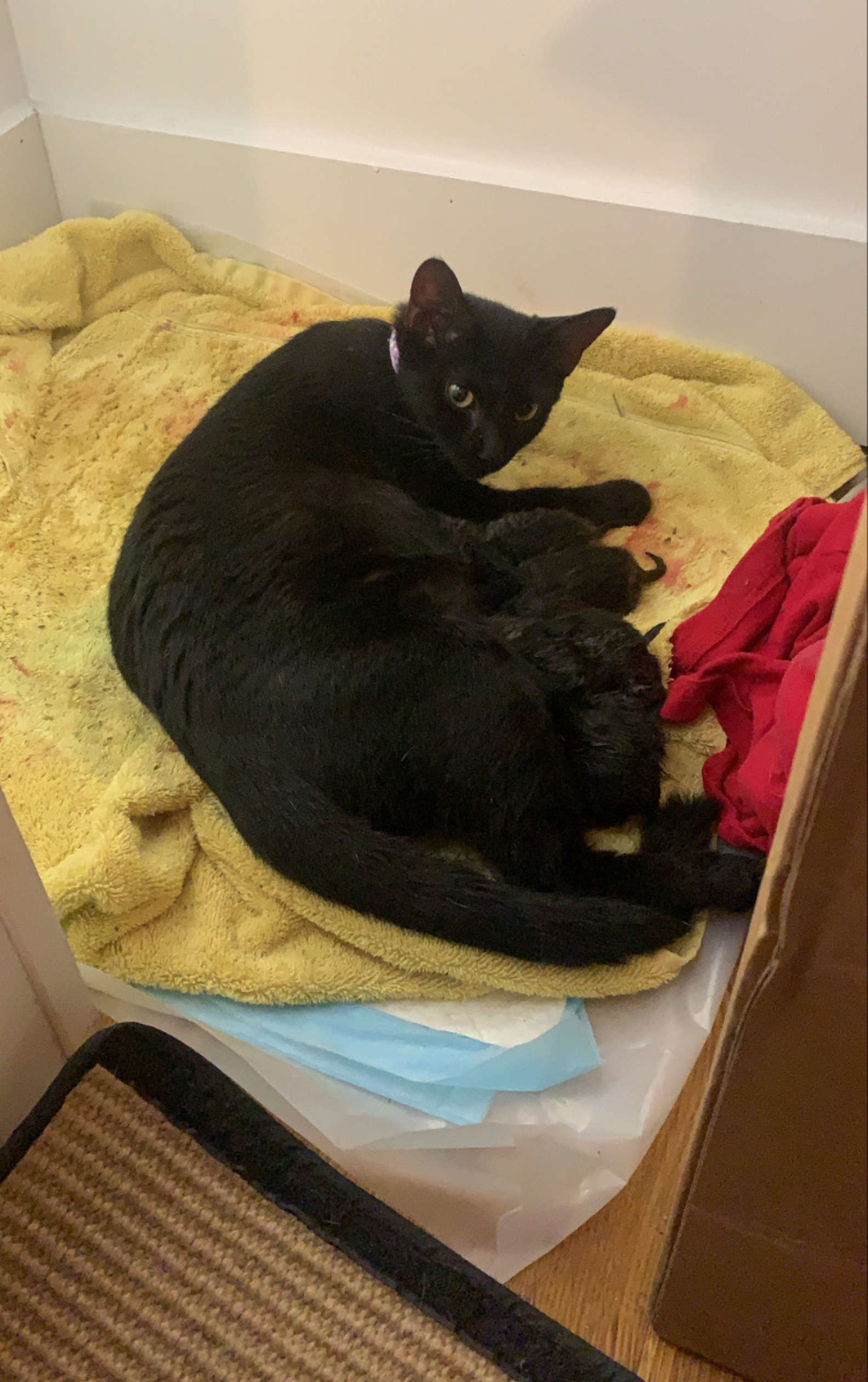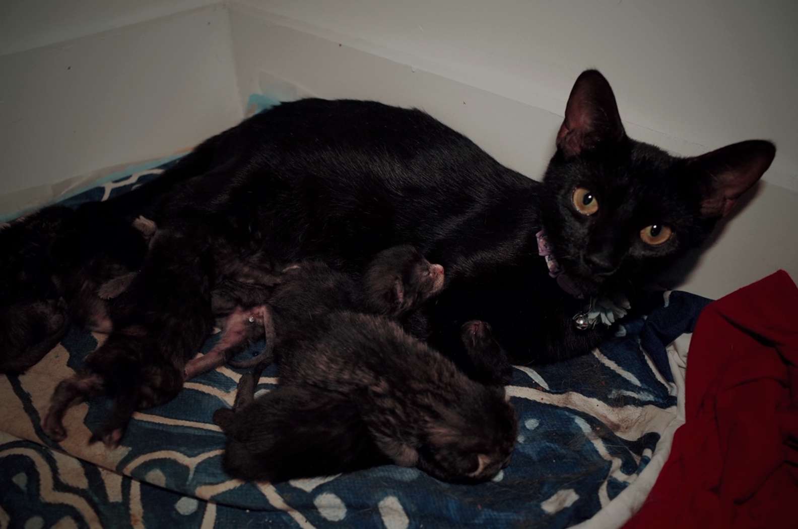 ▼一天晚上Gianna和男友回家時,發現Suki已經生下4隻小貓。他們本以為錯過了最寶貴的時刻,沒想到Suki繼續生育起來。