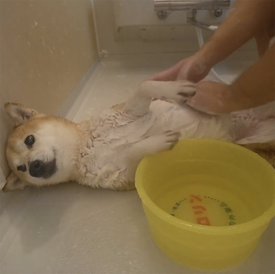這是什麼天使柴!洗澡澡「任揉搓」還不忘賣萌 網融化:看牠洗澡是種享受!