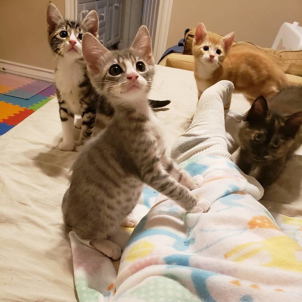 ▼Ashley家還有4隻貓咪,都跟Bartholomew差不多大。雖然Bartholomew非常瘦小,但牠很堅強,還很熱情。牠經常爬到Ashley的膝蓋上撒嬌,還會跟兄弟姐妹們玩鬧,大家都很愛牠。