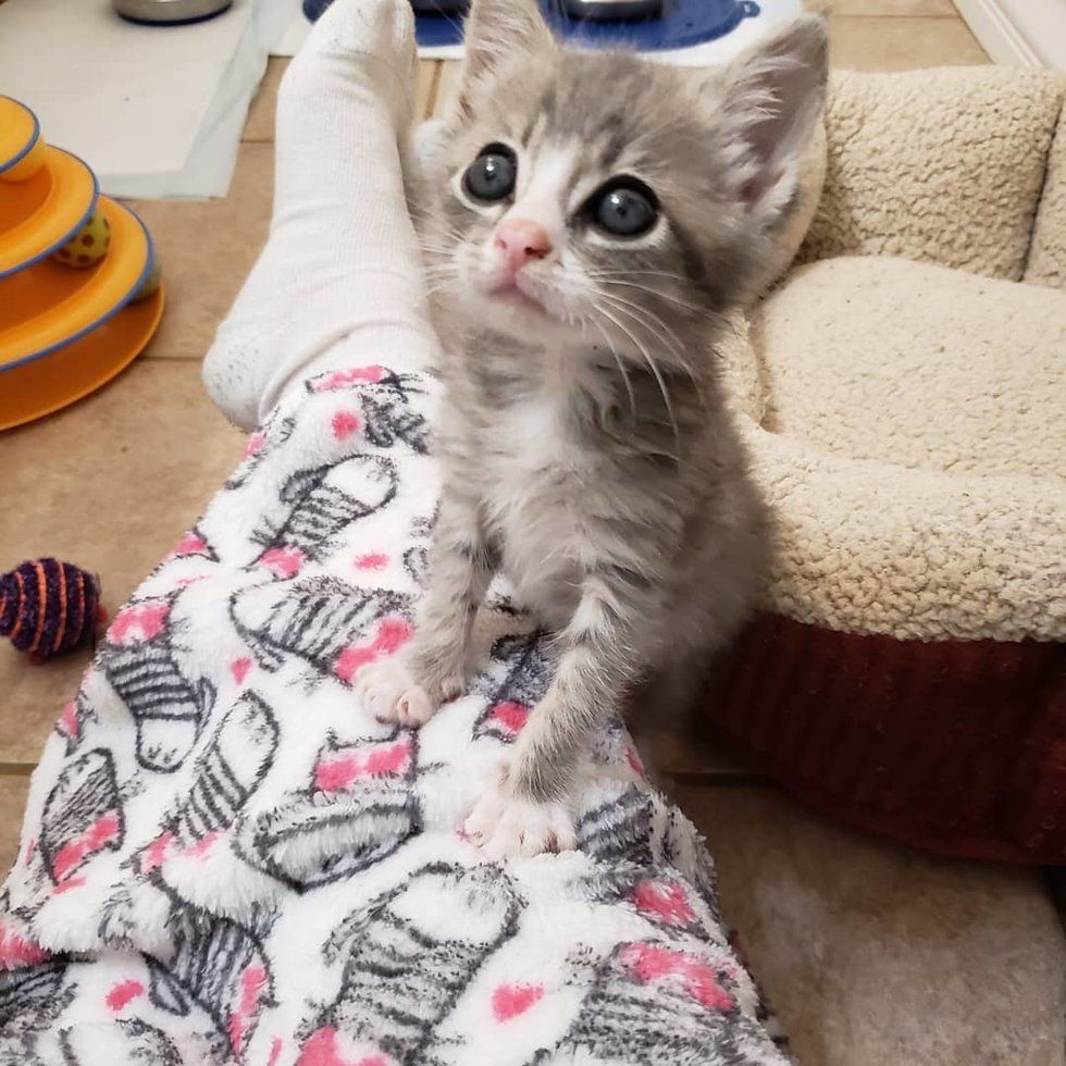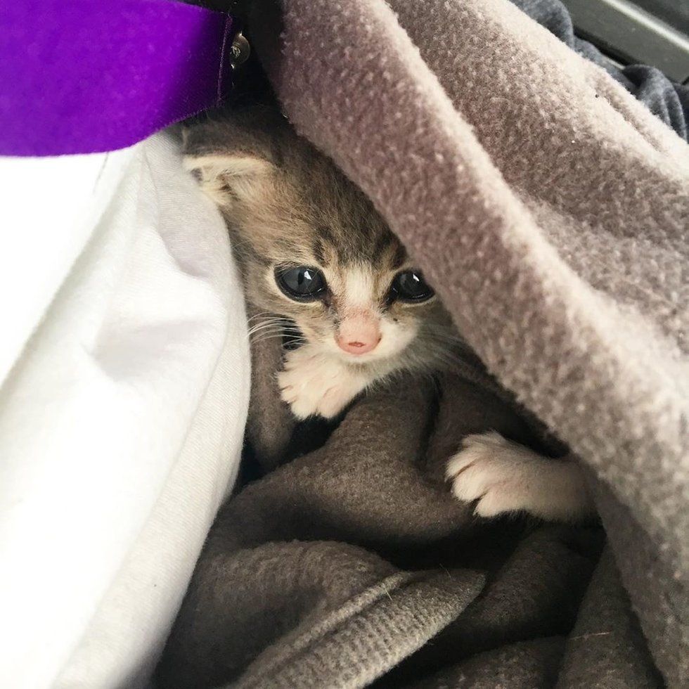 ▼這隻小奶貓需要全天候照顧,動保組織「Wrenn Rescues」的志工Ashley Kelley了解情況後,將這隻剛剛6週大的貓咪帶回了家。她給這隻小貓取名為Mustang Bartholomew:「牠是我見過最可愛的小傢伙!」