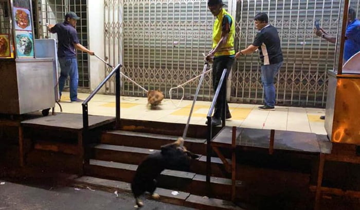 ▼這種圍捕流浪狗的方式受到網友譴責,網友們認為當局可以用更人道的方式來處理流浪狗的問題。如果只是要捕捉沒有主人的流浪狗,那麼照片中的5隻狗狗應該是有「主人」的,哪怕牠們的主人只是一個無家可歸的街友,對牠們來說也是家人一般的存在。