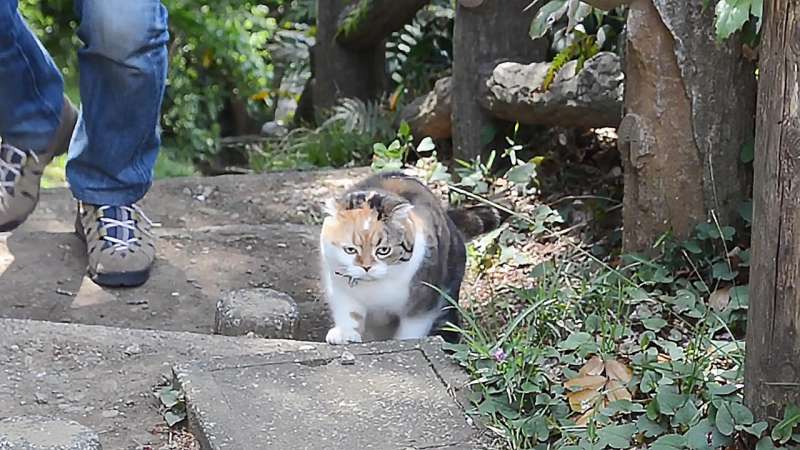 ▼Chami已經九歲了,是一隻三色貓,在1歲做結紮之後,開始像吹氣球般的變胖,主人為了牠的健康,開始帶牠去爬家裡附近的「吾妻山公園」健走。