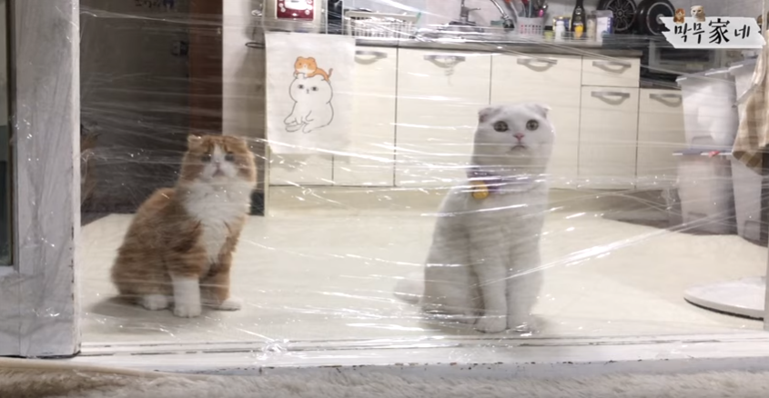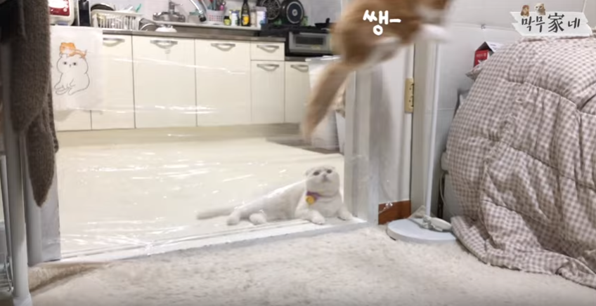 2020年11月30日很多貓奴除了細心的照顧主子外,閒暇的時候也會逗弄主子,想要看看主子的反應。韓國一名網友家裡養了兩隻貓咪,Makji非常活潑,另外一隻Muji就比較懶散。這次網友在家用保鮮膜做成隱形牆來考驗主子,結果讓網友笑翻了!