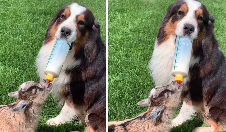 ▼Dusty的主人是Jeff和Emily,家裡還有3個小孩和其他成員。他們生活在農場中,能接觸到很多動物。Emily介紹說:「2019年復活節時,我們要照顧好幾隻小羊,其中一隻小羊出生後被媽媽拋下,所以我們要用奶瓶餵養好幾個月。我們都很喜歡照顧牠,突發奇想讓Dusty試著給小羊餵奶。Dusty受過訓練,知道如何輕輕叼起物體。所以我們讓牠輕輕叼著奶瓶,小羊就能吃奶了。」