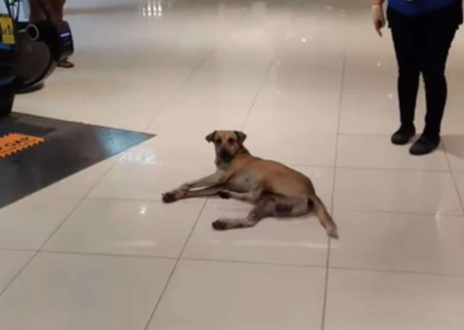 ▼那天菲律賓網友Jan Mart Calimpong和家人到「維斯塔購物中心(Vista Mall Taguig)」逛街,期間看到一隻流浪狗跑了進來。牠躺在賣場大廳露出肚肚休息,旁邊的民眾趕緊通報保全,保全出現後竟然蹲下來撫摸狗狗,還牽起牠的前肢,一步一步帶牠離開。