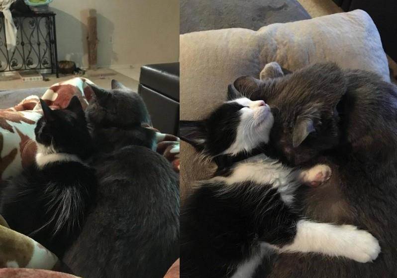 ▼賓克斯非常活潑,醒來後就在家里到處探索,很快就跟家中的兩隻貓咪成為了朋友。特別是老貓尼克,跟賓克斯的感情格外好。沒想到一個月後,16歲的尼克回到了喵星。狄克西非常不捨,賓克斯好像懂得主人的心情,總是貼心安慰他。