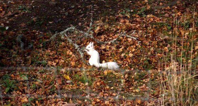 ▼有人在蘇格蘭的避暑勝地「皇家迪賽德」(Royal Deeside)拍到了白色的松鼠。野生動物學家Alex Stuart表示,有時候會發現一些白色的動物,比如麻雀、烏鴉、刺蝟等等,但白色松鼠很罕見。目前他們正在觀察,想弄清楚這隻松鼠白色的皮毛是不是白化導致的。