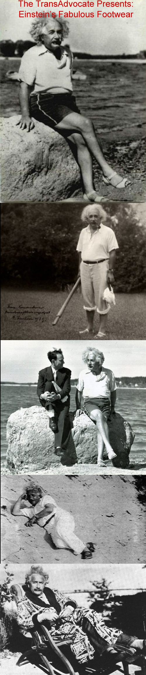 ▼愛因斯坦不喜歡穿襪子,據說他小時候穿襪子時,大腳趾經常破洞,他認為襪子限制了他的腳趾活動,所以乾脆不再穿襪子。他有時候會找不到自己的拖鞋,只能穿皮鞋,但又覺得穿皮鞋不穿襪子怪怪的,於是開始穿老婆的涼鞋,結果發現女式涼鞋超舒服,所以經常穿出門。