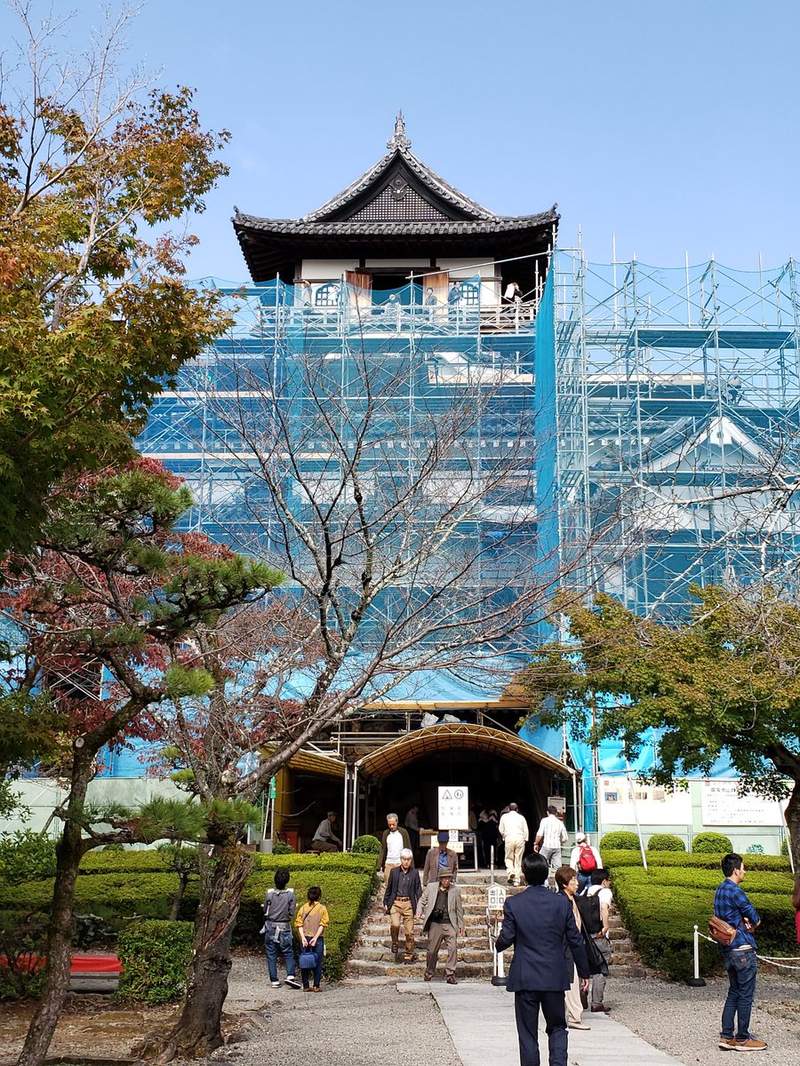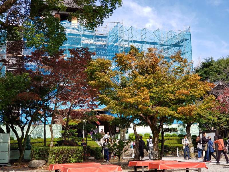 ▼歷史建築隔一段時間都需要保護、修繕。目前犬山城就在維護中。很多網友去遊玩的時候,看到外圍搭建起了建築工事。