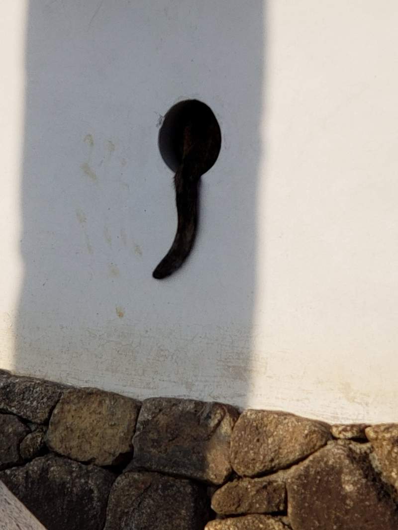▼圍繞犬山城轉一圈,會發現牆壁上有一些洞。貓咪很喜歡這種窄窄又隱蔽的地方,就躲在裡面休息,還會探出頭、露出尾巴,看起來很有趣。