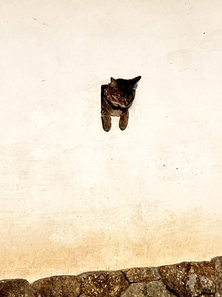▼很多人都曾拍到這些從牆壁上「長出來」的貓咪,牠們真的很喜歡這個秘密基地。