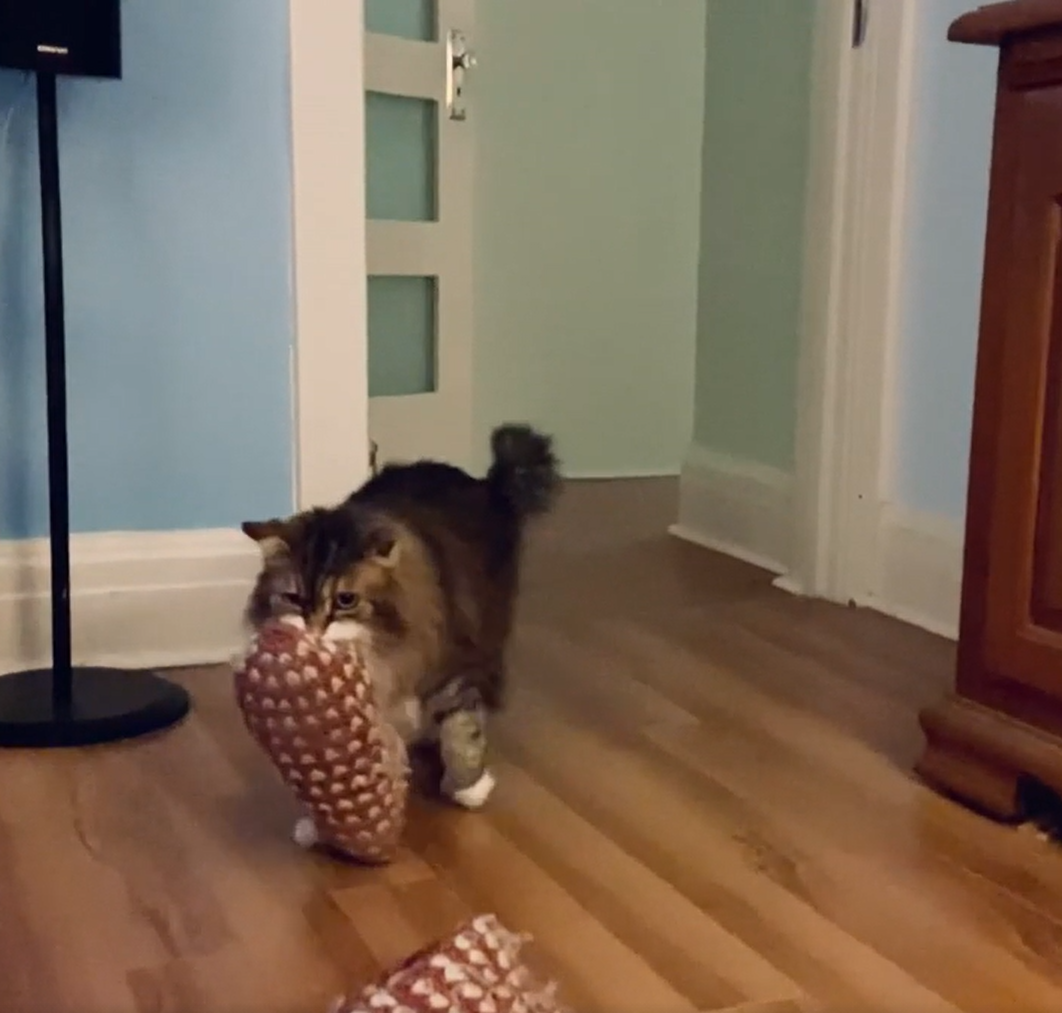 ▼只見Floof Fran叼著毛絨拖鞋走過來,房裡還有另外一隻,應該是牠之前叼過來的。Floof Fran放下拖鞋後專注看向飼主,好像在說:「天氣轉冷了,要照顧好自己,不要著涼!」飼主看到這一幕超感動,心裡瞬間超暖的。