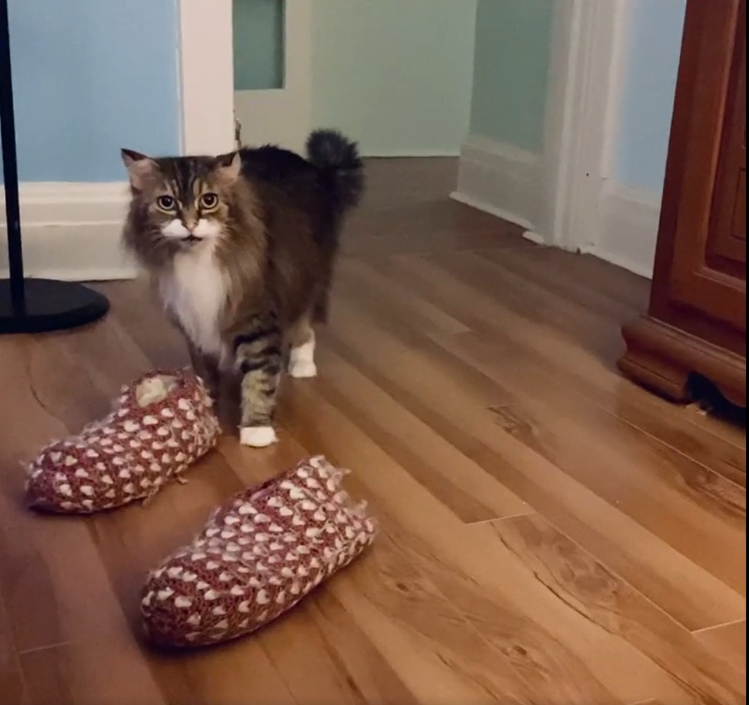 哪裡來的天使喵? 貓皇親自服務「叼來毛絨拖鞋」幫取暖 抬頭喵喵叫:天氣冷多穿點唷~