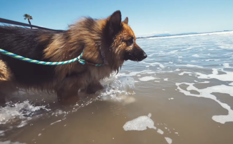困在院子裡5年! 德牧重獲新生「第一次到海邊玩耍」 牠「高興到跳起來」:我自由啦~