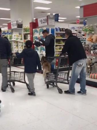 ▼網友偶遇撒嬌耍賴的月月,拍下影片與網友分享。陪著主人好好逛街的月月被貨價上的「娃娃」吸引,站在原地捨不得離開。