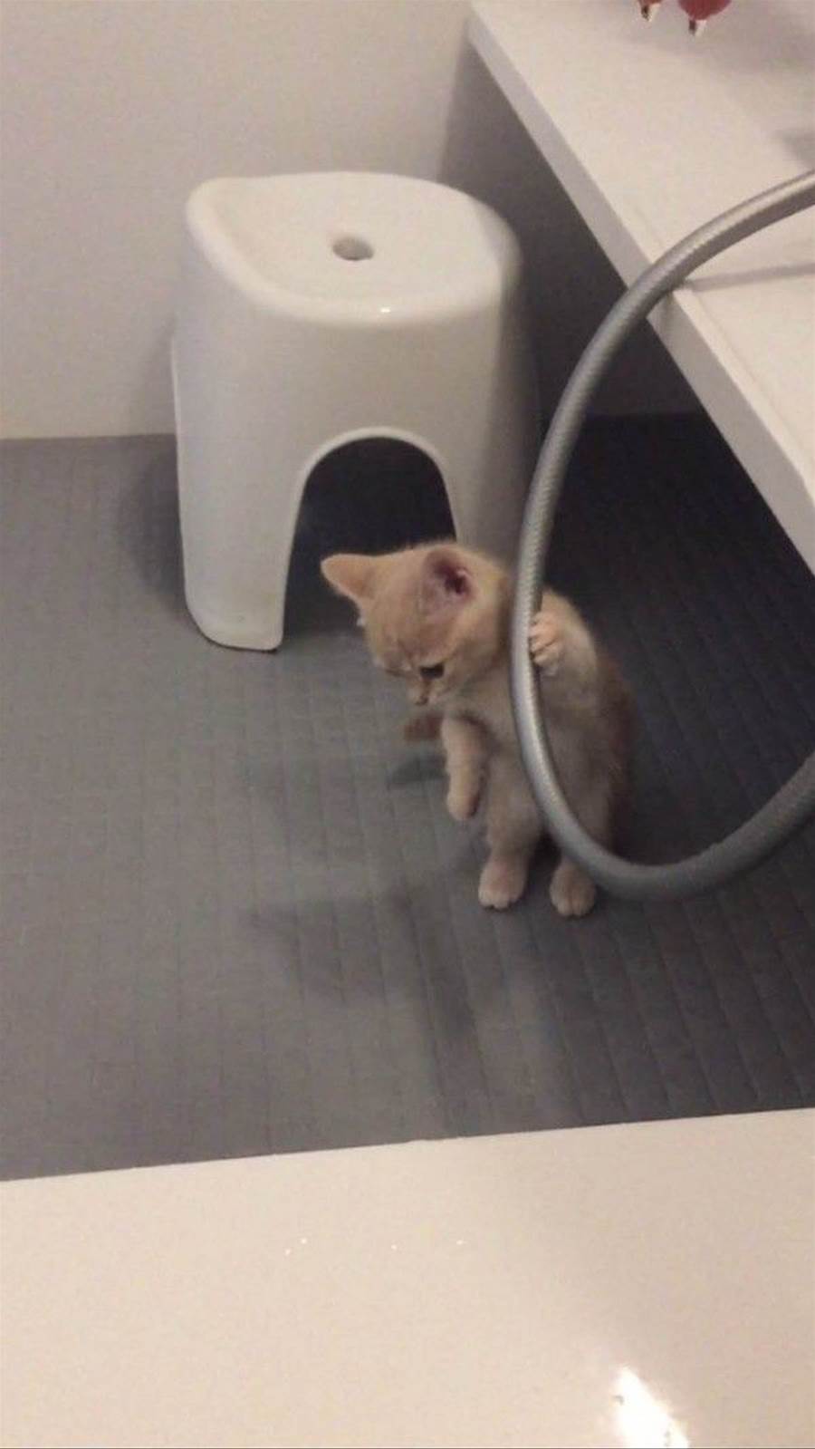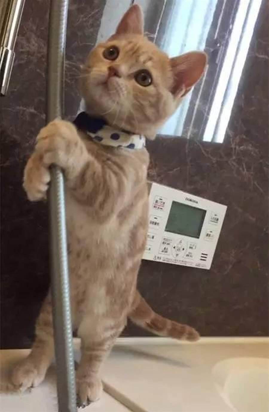 ▼之前Miru的主人分享過給貓咪洗澡時的情況。Miru因為害怕洗澡,竟然用後腳站立,還伸出小短手抱著旁邊的水管不放。牠睜著無辜的大眼睛看向主人,好像在求饒。網友們看到照片都超心疼,紛紛留言要主人不要逼牠洗澡,貓咪撒嬌時的軟萌模樣讓人無法拒絕。