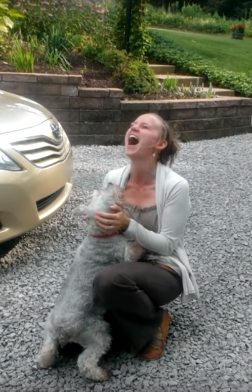 狗狗們的情感總是很真實,國外一位女主人瑞貝卡(Rebecca)因為在國外工作,已經2年沒見到家中養的雪納瑞凱西(Casey)了。當凱西與她重逢時無比開心,竟然還當場昏過去!