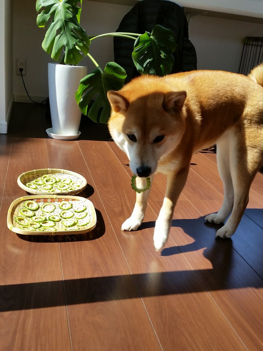▼那次推主在家中曬苦瓜,柴柴悄悄走過去吃了一塊。主人將牠的反應全部拍下來,笑說:「不需要台詞也能傳達像4格漫畫的感覺(笑)」
