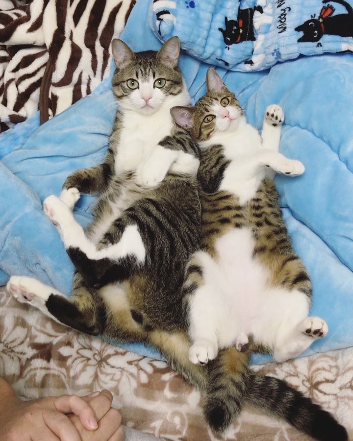 2020年12月22日緣分非常奇妙!日本一位網友養了兩隻貓咪,分別叫Suzume與Unagi。牠們長得非常像,都是白底虎斑貓,很多人還以為這兩隻貓咪是同胎的兄弟。其實並非如此,弟弟Unagi原本是一隻流浪貓,在收容所中差一點就要被處理掉。幸好主人搶在牠被人道的前一刻收編,牠才有了現在的幸福生活。