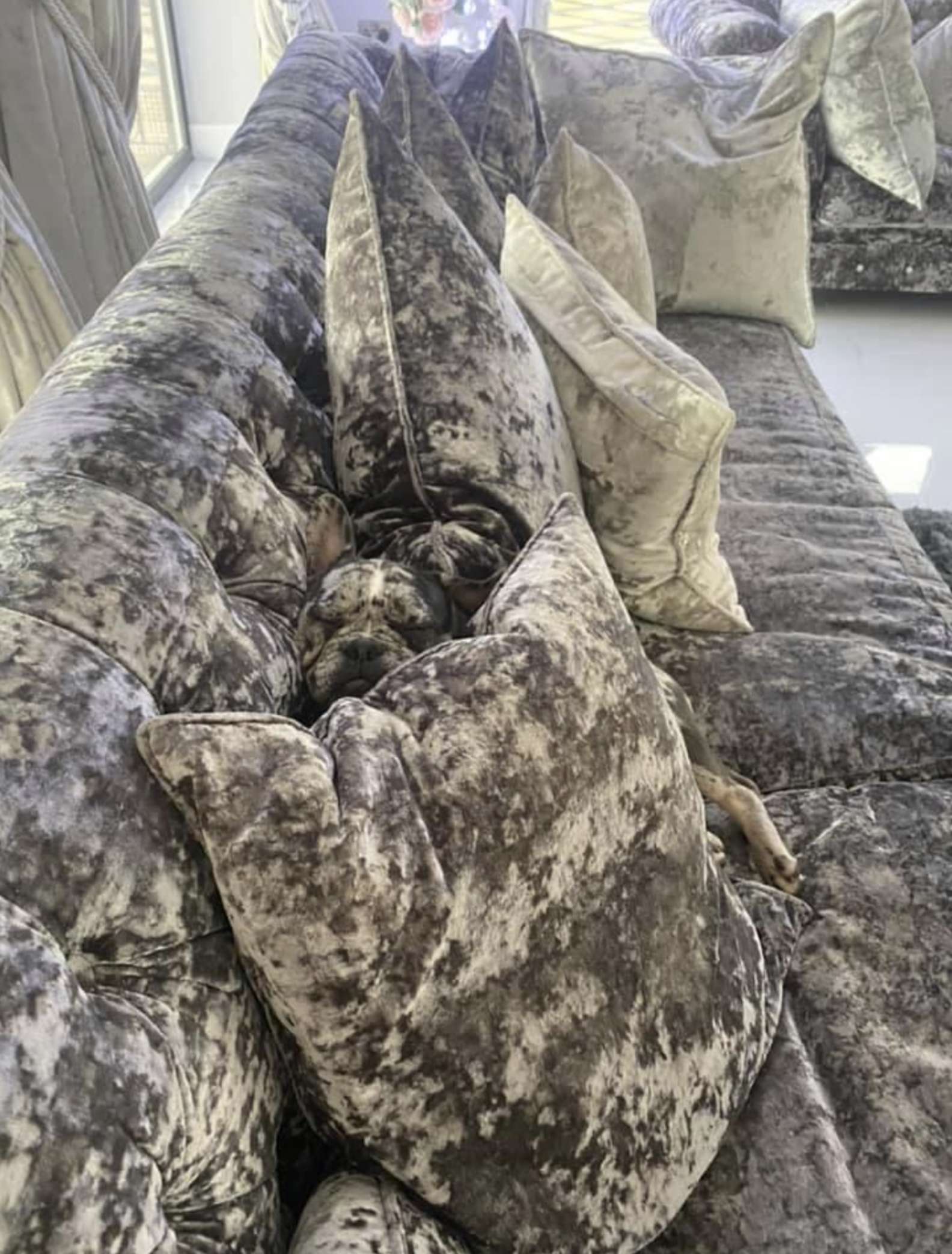Tina給Vinnie和Rocco拍攝了很多照片,狗狗們的一舉一動都能讓她覺得很驚喜。這兩隻可愛的狗狗能帶來滿滿的療癒感,尤其是牠們躺在沙發上的時候,更讓人覺得可愛又好笑。牠們已經掌握了真正的隱身術,能在沙發上「神隱」了!