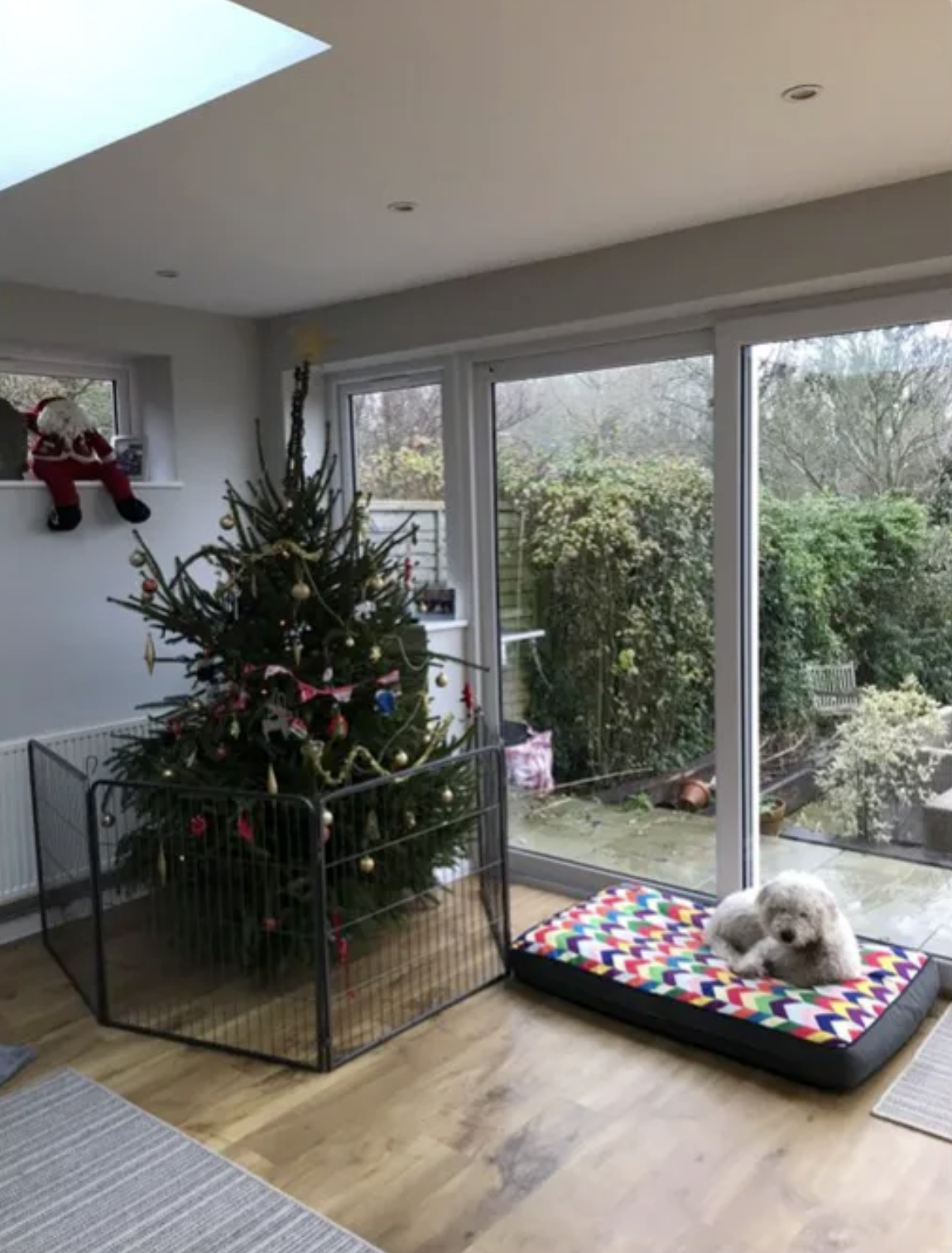 ▼「我現在都怕了。我的聖誕樹還沒有裝飾好,只能設法攔住貓咪不許牠過來搗亂。」
