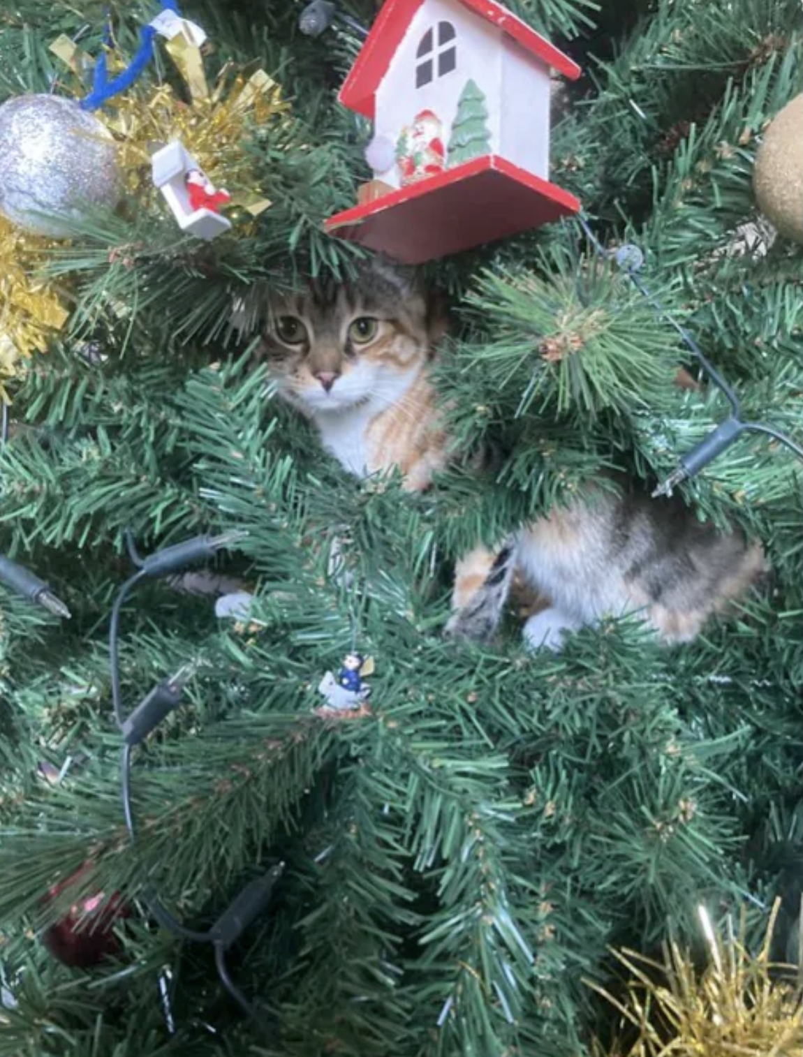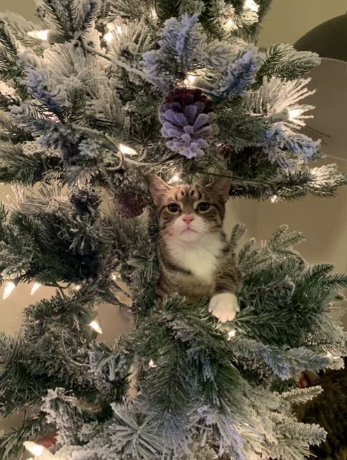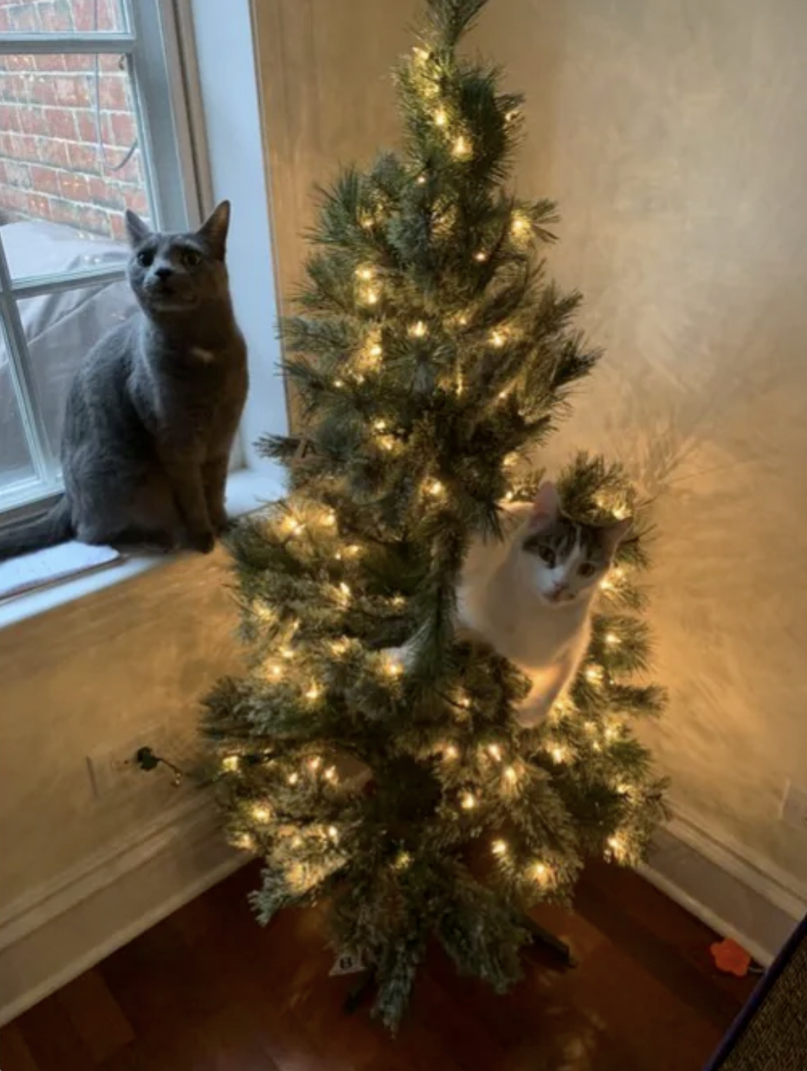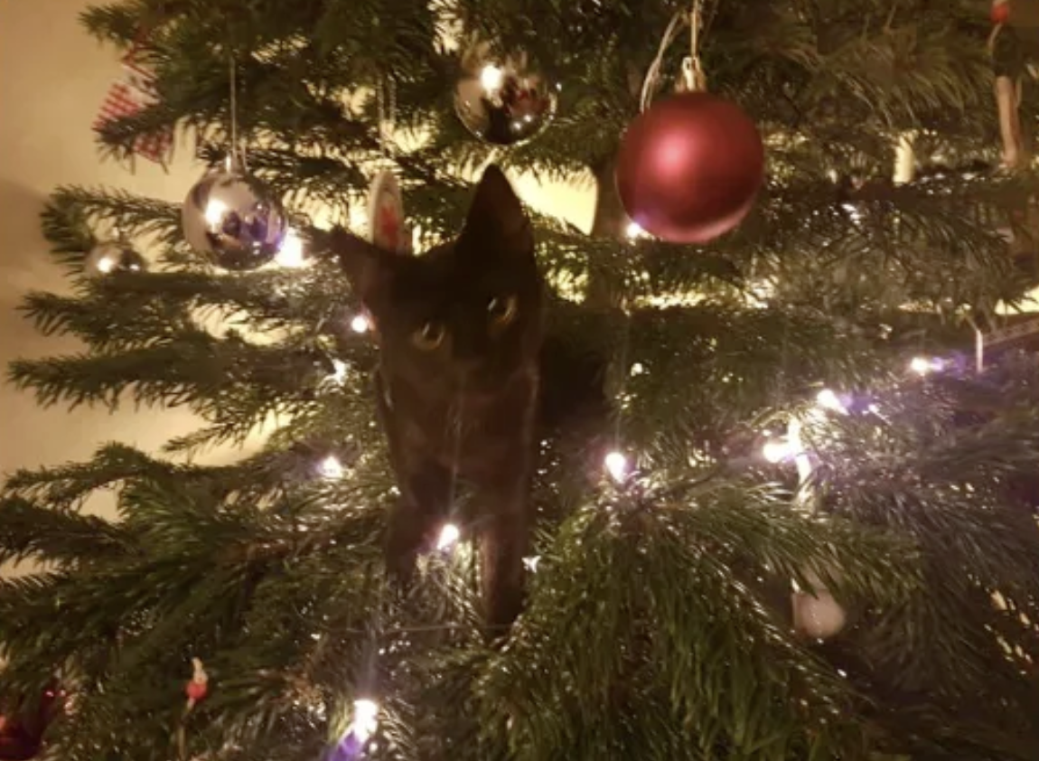 聖誕節到來,很多人喜歡在家中擺放聖誕樹,再掛上各種各樣的飾品,增添節日氣氛。但家中有貓咪的話,聖誕樹的「生存期」可能會大大縮短,因為對喵星人來說,聖誕樹就是「貓樹」。牠們可以爬上爬下、咬葉子、抓飾品,玩得不亦樂乎。推主@markmleach分享了自家聖誕樹被貓咪佔領的照片,問:「推特上的貓友們,大家聖誕節都有遇到這樣的問題嗎?」