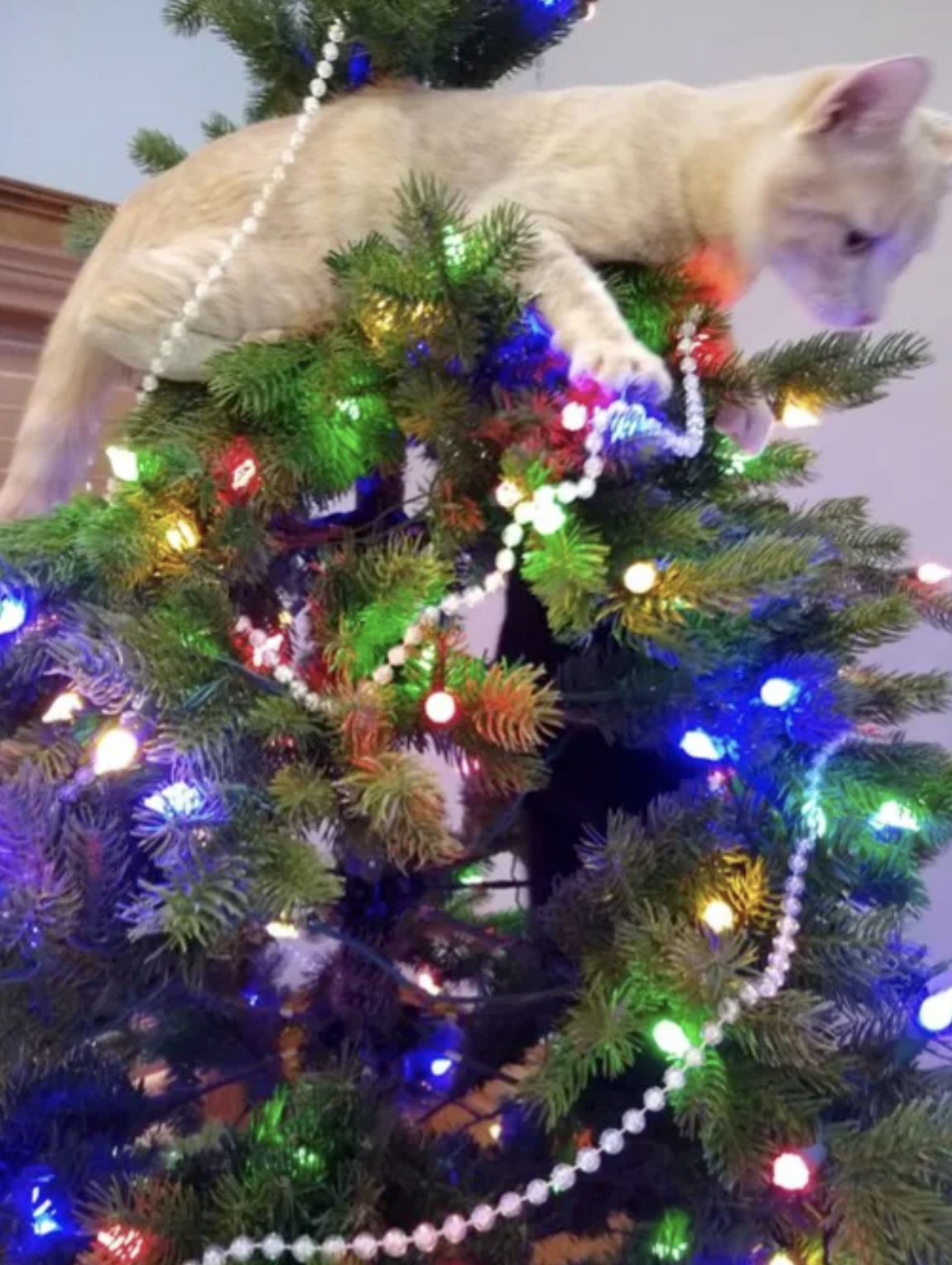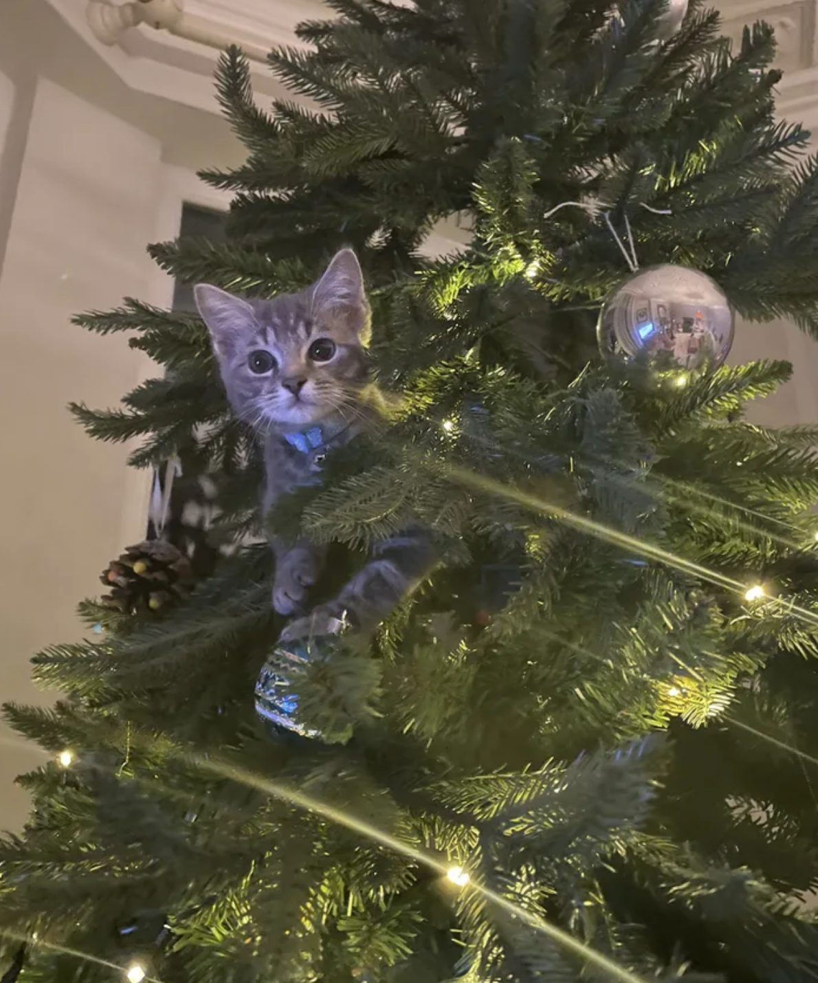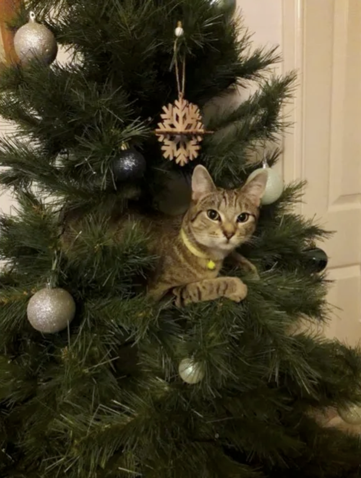 聖誕節到來,很多人喜歡在家中擺放聖誕樹,再掛上各種各樣的飾品,增添節日氣氛。但家中有貓咪的話,聖誕樹的「生存期」可能會大大縮短,因為對喵星人來說,聖誕樹就是「貓樹」。牠們可以爬上爬下、咬葉子、抓飾品,玩得不亦樂乎。推主@markmleach分享了自家聖誕樹被貓咪佔領的照片,問:「推特上的貓友們,大家聖誕節都有遇到這樣的問題嗎?」